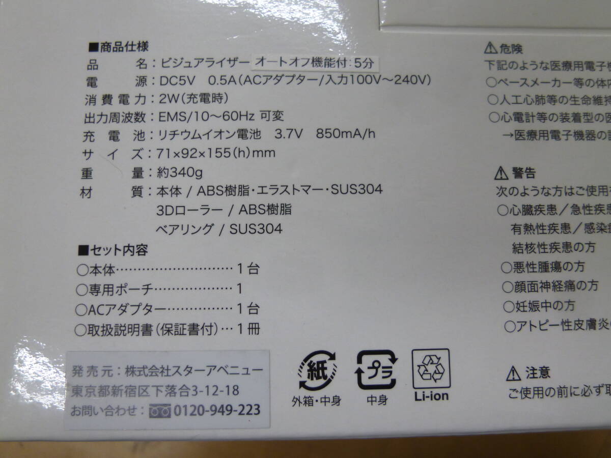 数あるオークションの中からアクセス頂き誠に有難うございます。 :*:★ 落札前に必ず「発送詳細」「注意事項」ご覧ください★:*: 【商 品】 ビジュアライザー 美容機器 【メーカー】 avex エイベックス 中古の商品になります。 動作は問題ありませんでした。 あまり使用感はなく美品です。 付属品は画像にある物が全てになります。画像に無いものは付属しませんので必ずご確認下さい。 現状品になります。 出品直前に、通電および動作確認しました。 簡易的な動作の為、全機能を確認、保証するものではありません。 落札後はノークレーム・ノーリターンで、到着日にきちんと 受取連絡ができる方のみお願いします。 出来ない場合は悪い評価がつきますので、よくご確認の上入札をお願いします。 現状品になりますのでいかなる場合もキャンセル・返品はご対応が出来ませんので入札前にご確認ください。 ◆商品の状態、付属品等は画像にてご確認しご判断下さい◆ 発送方法、商品の状態など、ご理解ご納得の上、ご入札頂ますようお願いいたします。 検品時、発送時に商品の確認は念入りにしておりますが見落としもある場合もございます。 あくまで新品のお品ではなく中古の商品にはなりますのでご理解下さい。 ※上記は、入荷時の動作状態となります。 経年品の為、お届け時に動作しない可能性も御座います。 動作の保証は致しかねますので、その点ご理解の上、ご検討お願い致します。 ノークレームノーリターンでお願いします。 ■自身で使用していた商品ではなく仕入れの商品になりますので購入時期、使用(保管)期間等は分かりません。 ■付属品は画像にある物が全てになります。すべては個人的な主観のもとで検品等をしています、状態(欠損)、部品等(欠品)の有無などは画像でご判断をお願い致します。 ■現状品としての出品となりますので、返品、交換はお受けできかねますので予めご理解の程よろしくお願い致します。 ■付属品に関しましてご不明な点がございましたら事前にお問い合わせ下さい。 ■出品時に簡単に動作確認はしておりますが短時間での確認になります。長時間での使用確認はしておりませんので予めご了承下さい。 (中古の商品になりますので完全に動作する保証はございません) 未使用品の場合は動作の確認をしてありませんので予めご了承下さい。 ■フィルター、バッテリー等、消耗品に関しましては現状となり残量、使用期間等は分かりませんので予めご了承下さい。 ■仕入れの商品で見た目では判断できない劣化、長期保管による独特な匂い等がある場合もございます。完全なる新品商品ではありませんので気になる場合は入札をお控えください。 ◆厳重な検品を行っておりますので基本すり替え防止の為、返品交換等はご遠慮ください。ノークレームノーリターンでお願い致します。 商品の状態などよくご確認頂きまして入札お願い致します。 ☆★中古の商品になりますので元箱がない商品はリサイクル資材となります。別の箱での発送になりますので届きましたら商品の確認をお願い致します★☆ ◆収納ケース、収納バックがある商品に関しましては詳しく検品はしておりませんのでキズ汚れ、破損、錆、割れ、破れなどがある場合もございますがおまけの商品としてお考え下さい。 |