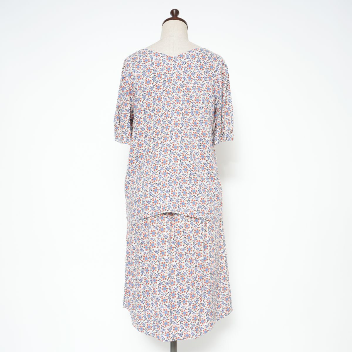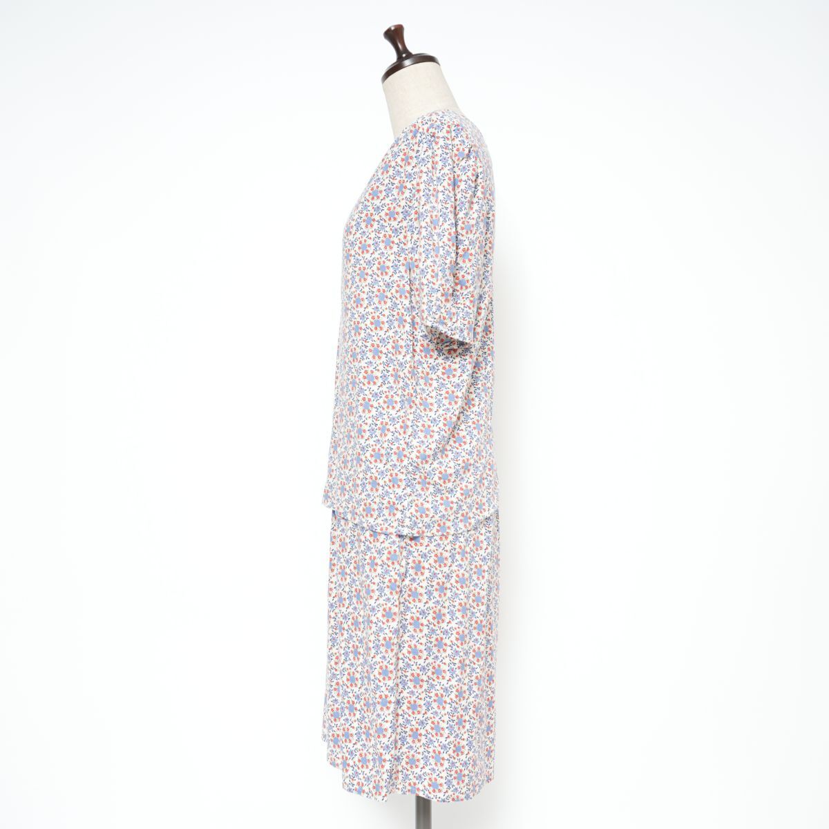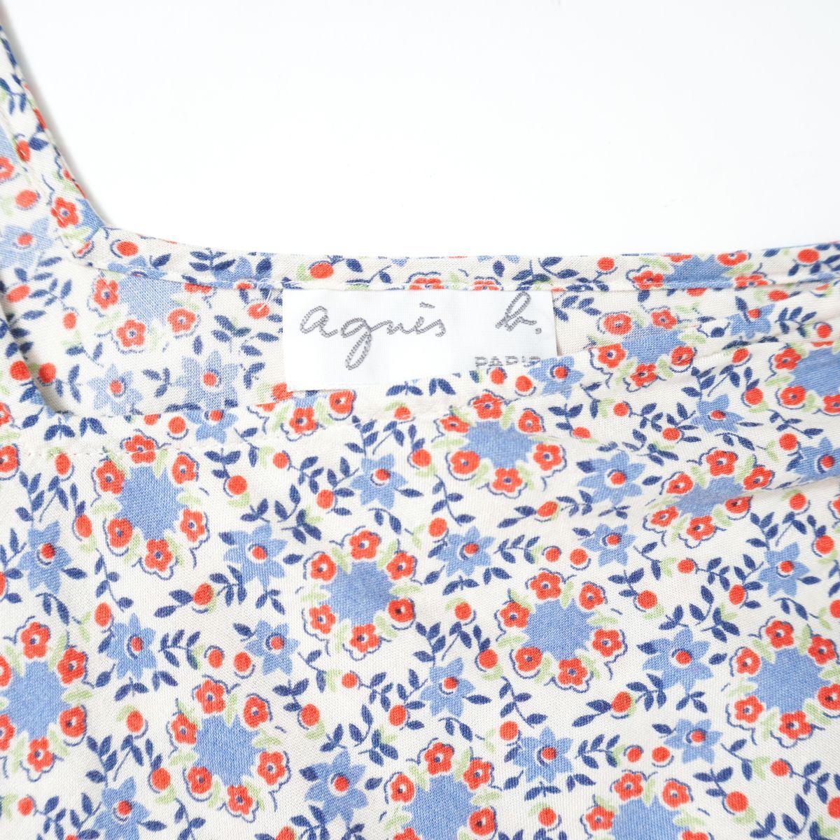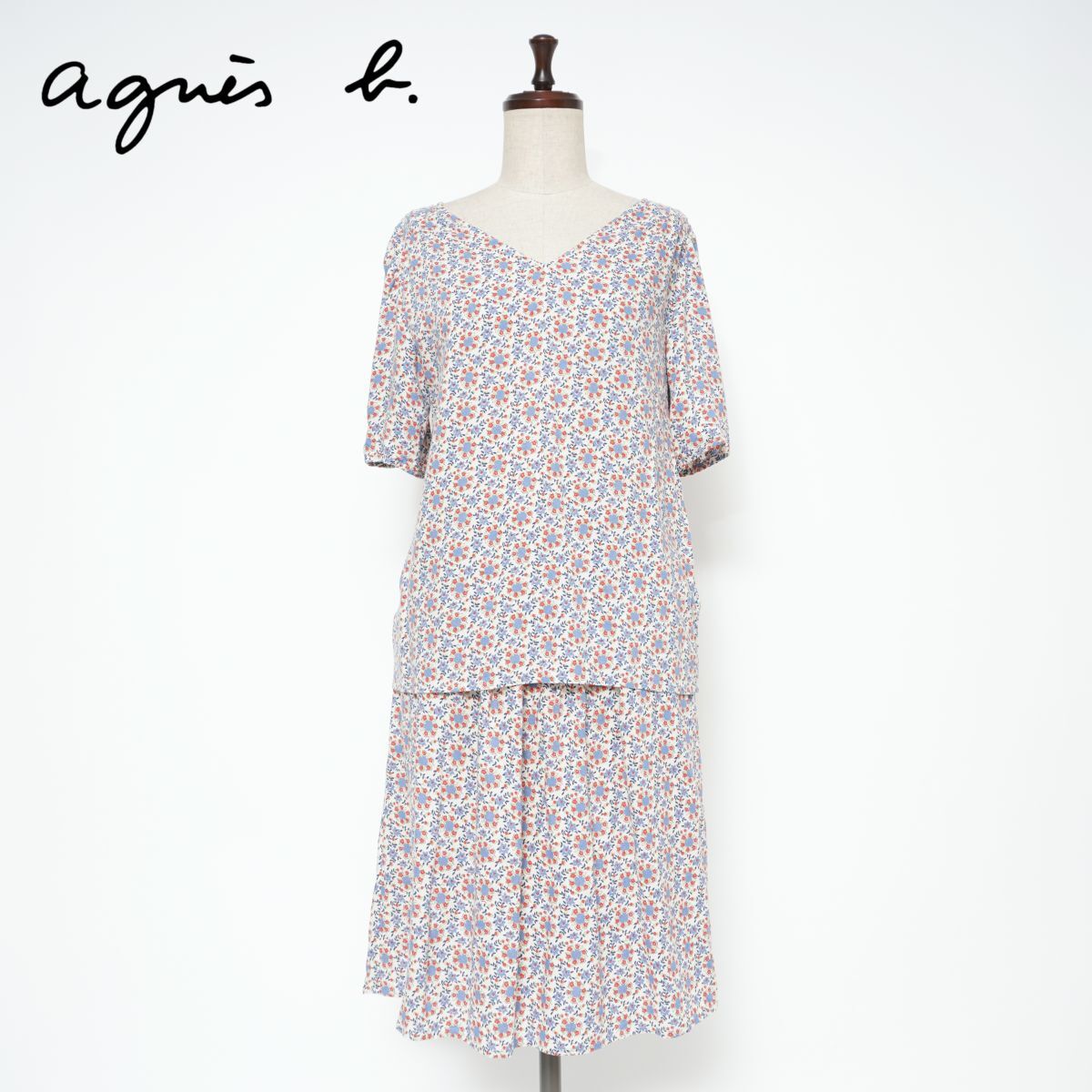 美品 agnes b. アニエス・ベー 花柄セットアップ カットソー&スカート 半袖 裏地なし 膝丈 レディース ホワイト 白 サイズ40*BD1191