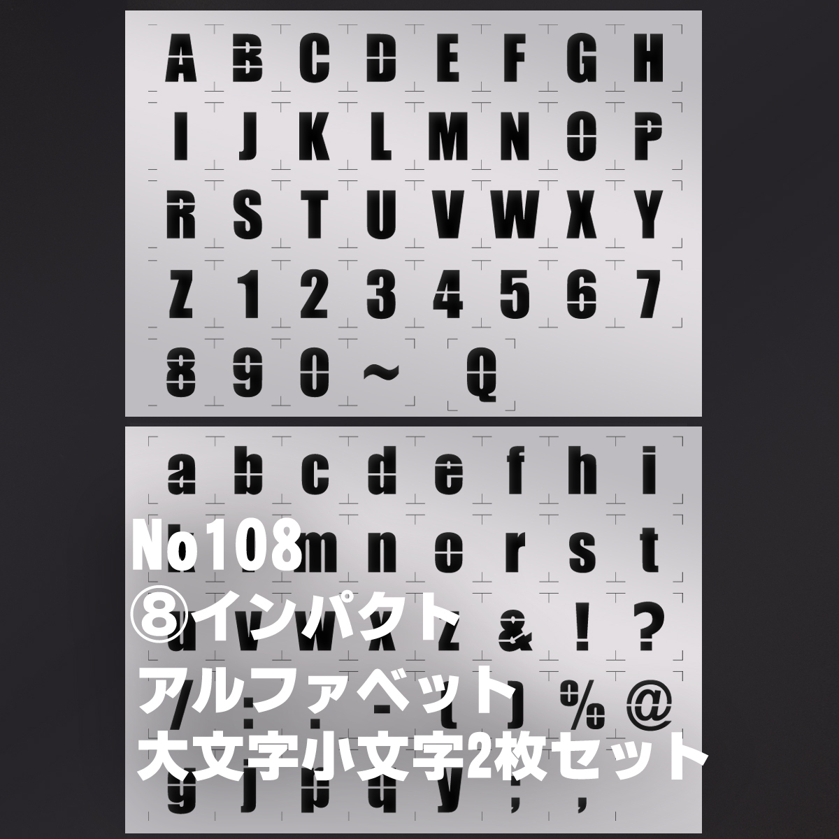 ☆2枚セット アルファベット大文字小文字 インパクト◇ステンシルシート  NO108