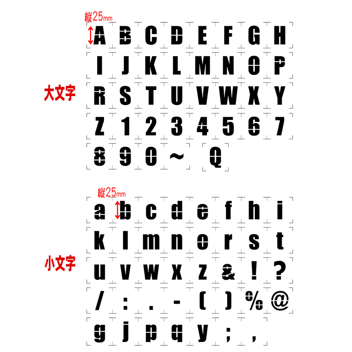 1文字サイズ 大文字「A」縦25mmを基本にしています。