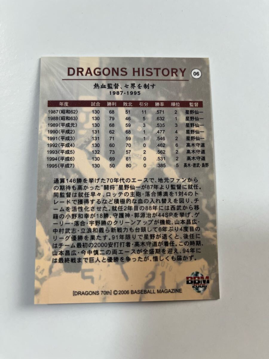 2006 BBM プロ野球トレーディングカード 中日ドラゴンズ 70周年カード 06 DRAGONS HISTORY 星野仙一監督 胴上げカード