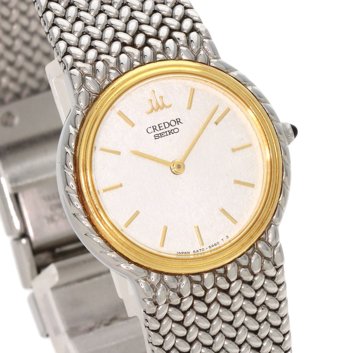 SEIKO セイコー 5A70-0260 クレドール 腕時計 ステンレススチール SS K18YG レディース 中古
