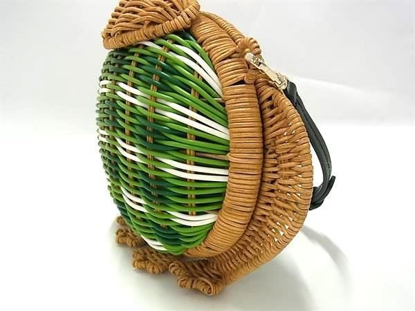 ■極美品■ kate spade ケイトスペード ホプキンス フロッグ ウィッカー ショルダーバッグ ポシェット ブラウン系 FM6221