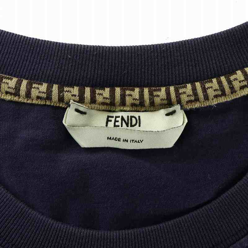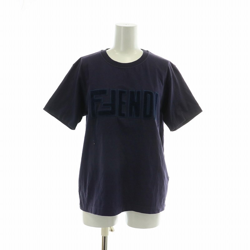 フェンディ FENDI Tシャツ カットソー 半袖 クルーネック ロゴ ワッペン M 紺 ネイビー FS7254 AD8Z /XZ ■GY19 レディース
