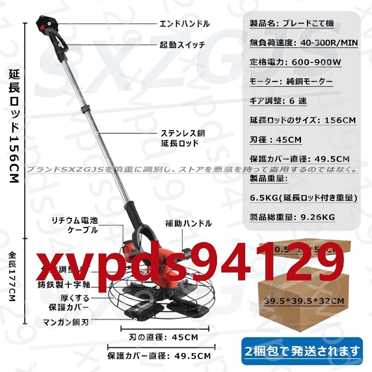 充電式トロウェル 電動トロウェル【電池後部搭載-新しい設計 】コンクリート研磨機 ポリッシャー 電動サンダー 45cm大直径 6速調整 延長ロッド 電気サンダー こて ウォールサンダ ドライウォールサンダー 左官 土間 壁面平滑化 2個-10?電池