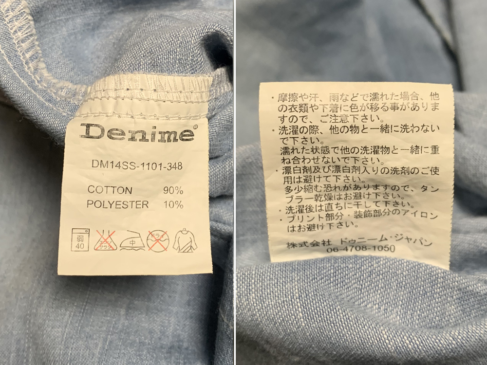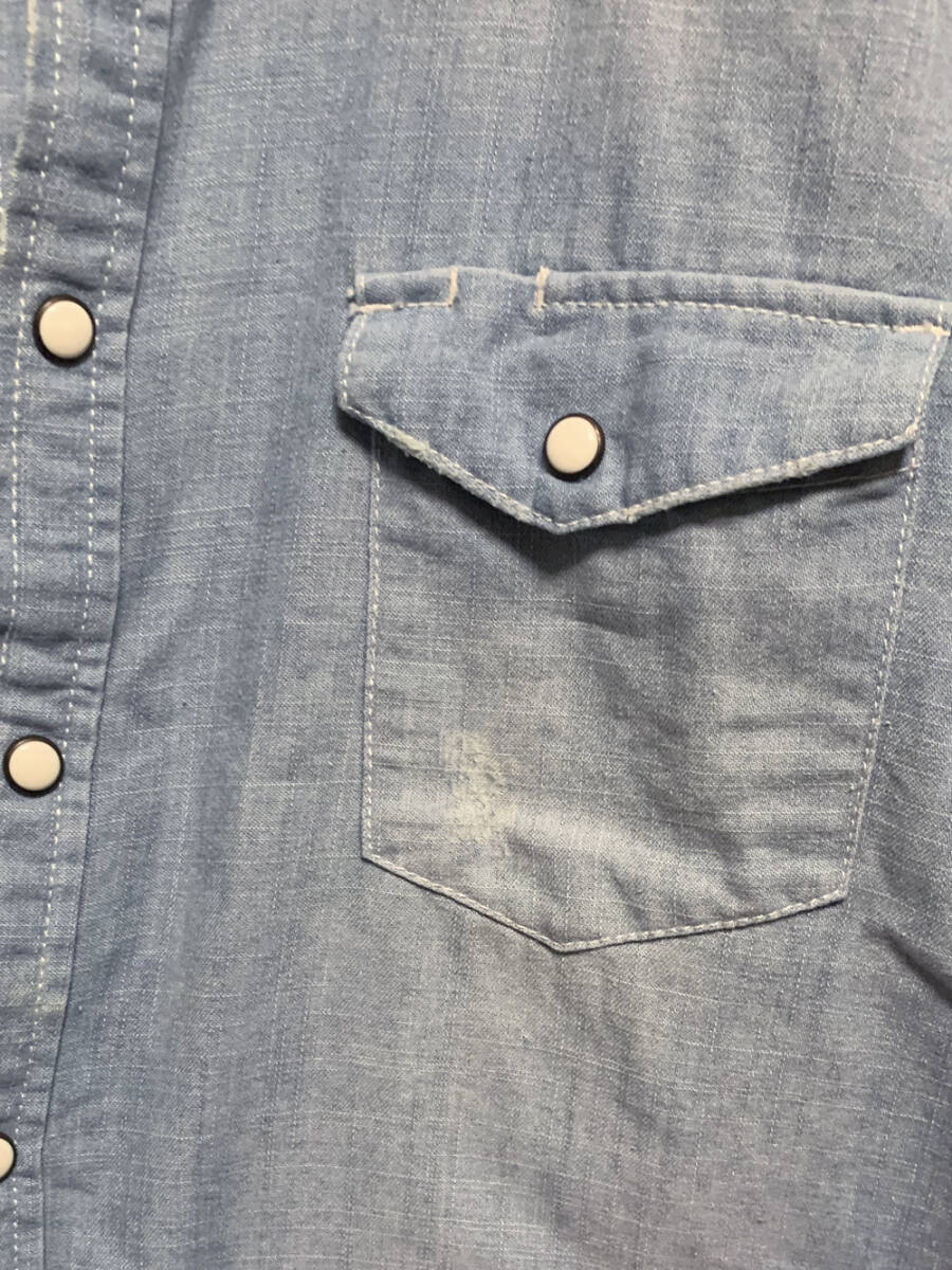 M【DENIME|半袖シャツ】ドゥニーム デニム地 加工 ウエスタンシャツ ダンガリー