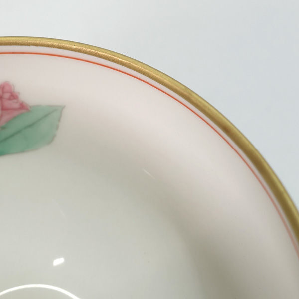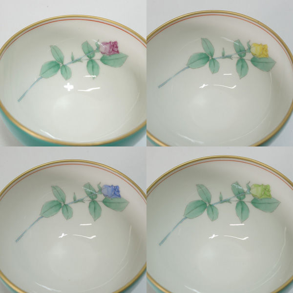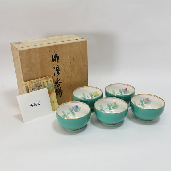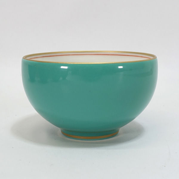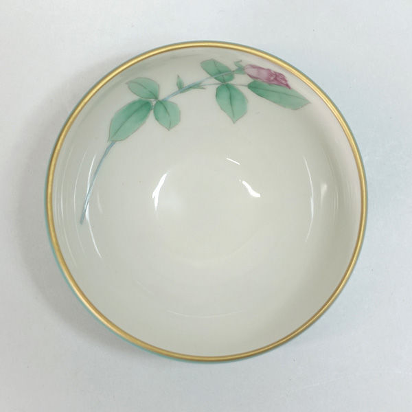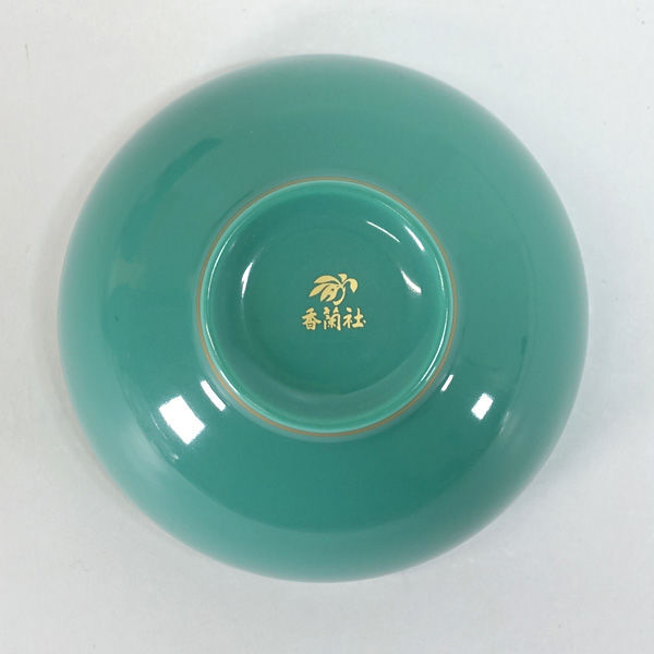 人気の香蘭社、グリーン地に金彩をまとった上品なローズモチーフの器です。お茶席にいかがでしょう。 |