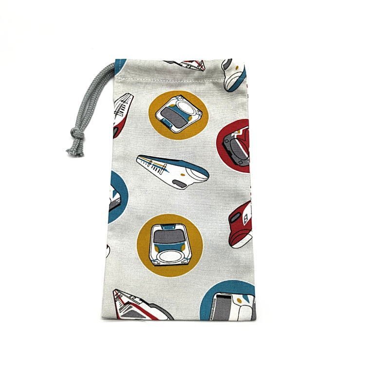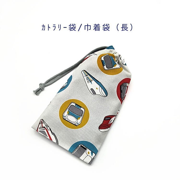 カトラリー袋・巾着袋 長方形【スーパーエクスプレス柄 グレー】カトラリーケース 箸袋 はし袋 コップ袋 ポーチ 男の子 新幹線 電車