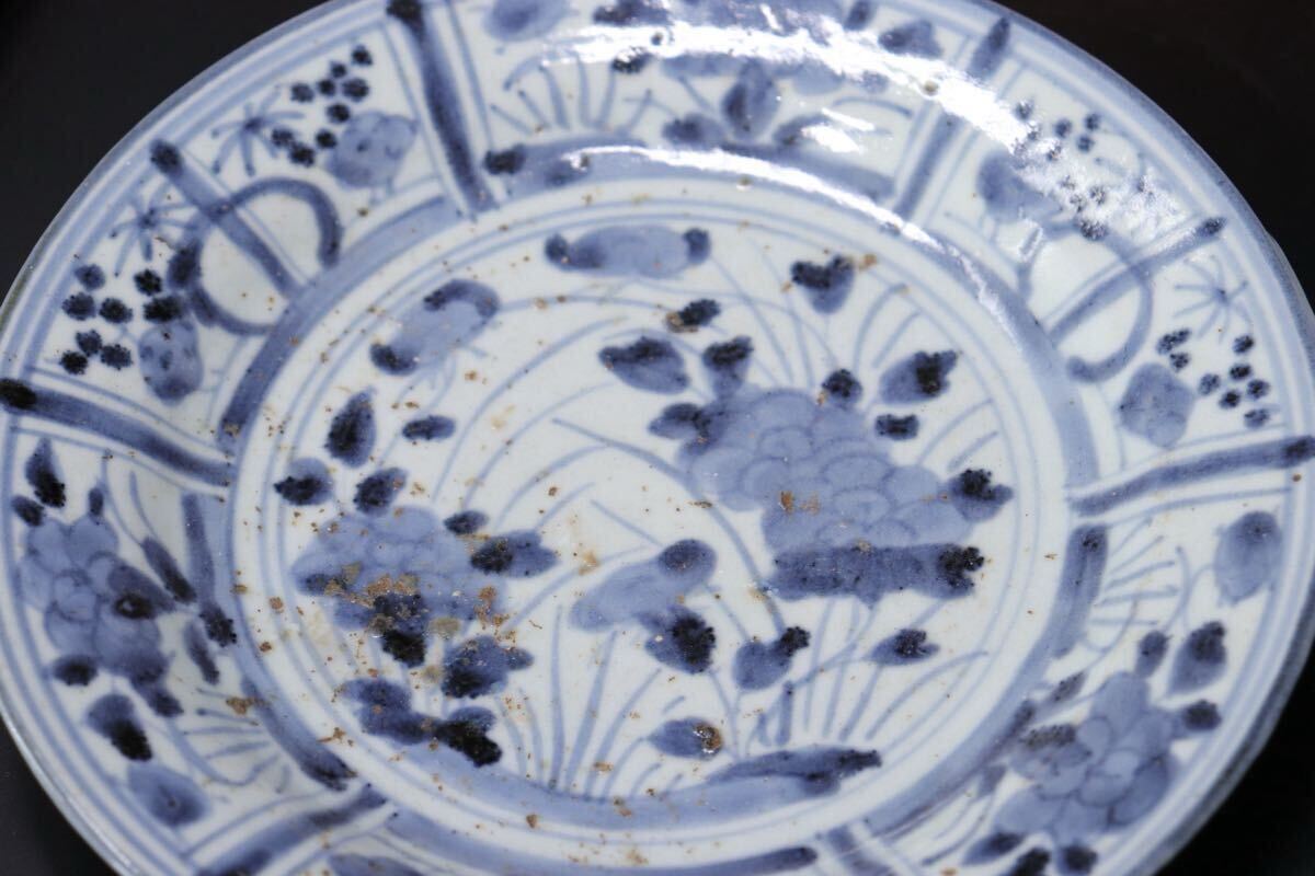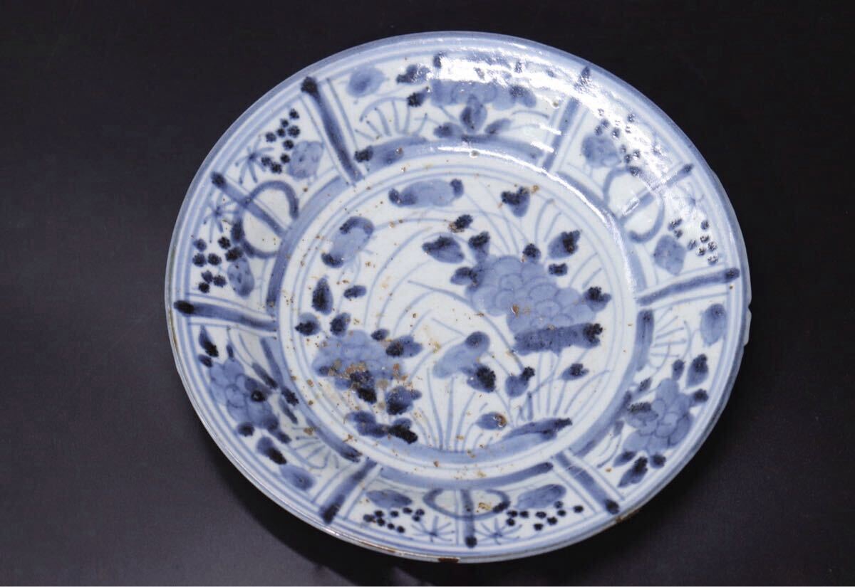 時代 「 南京染付 菓子器 」 染付 芙蓉手 皿 共箱付 / 中国美術 青花 絵皿 検索: 新渡 祥瑞 .B154 |