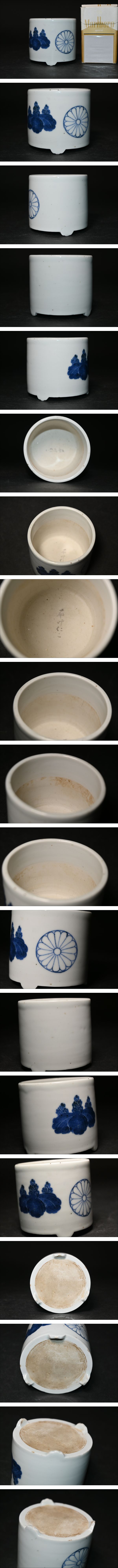 古伊万里 染付 菊桐文 三足 香炉 箱無 菊花紋 香爐 茶道具 香道具 | |||||