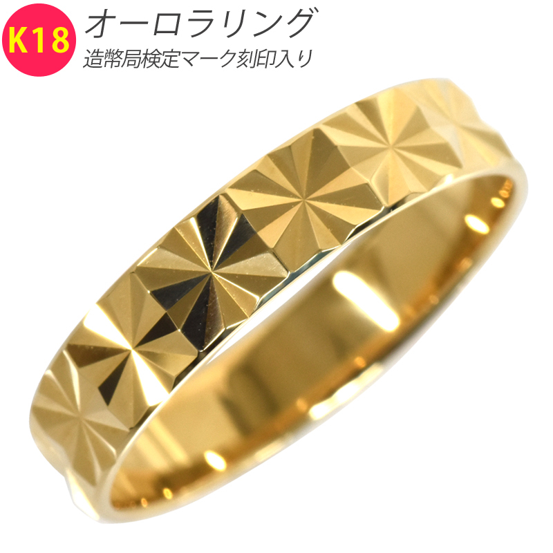 コメント | 輝きが煌めく18金ゴールドリング。 見栄えのする4mm幅リングで、日常使いにガンガン使えるデザインリングです。 極光カットでダイヤモンドが無くても、輝いて綺麗です! また内甲丸になっているので、着け心地も抜群! カット面が両横の指に当たっても痛くないように、厚みは控えめです。 |