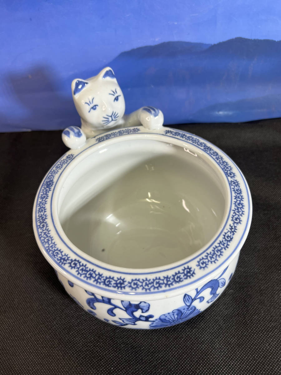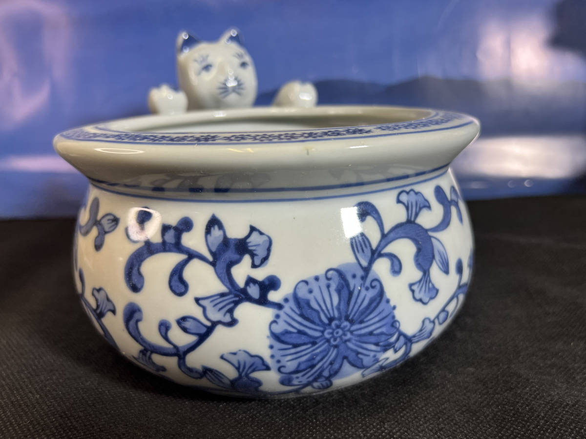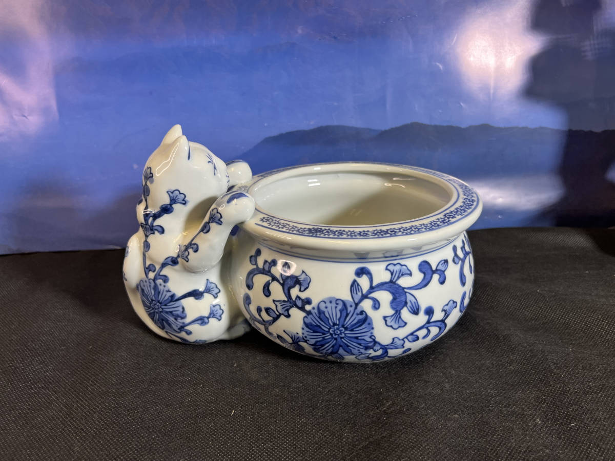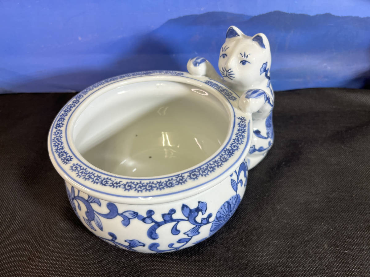 陶器製 【猫覗き魚缶】 水槽 ペット用品 金魚鉢 メダカ ブーム 観賞用 植木鉢カバー 水鉢 人気 染付 睡蓮鉢 陶磁器