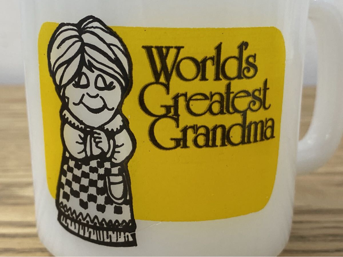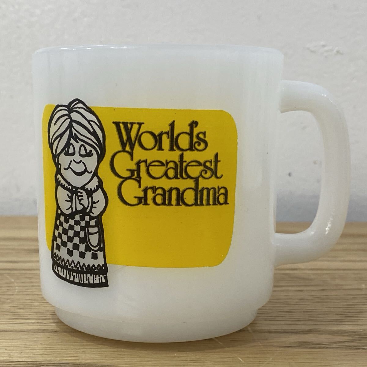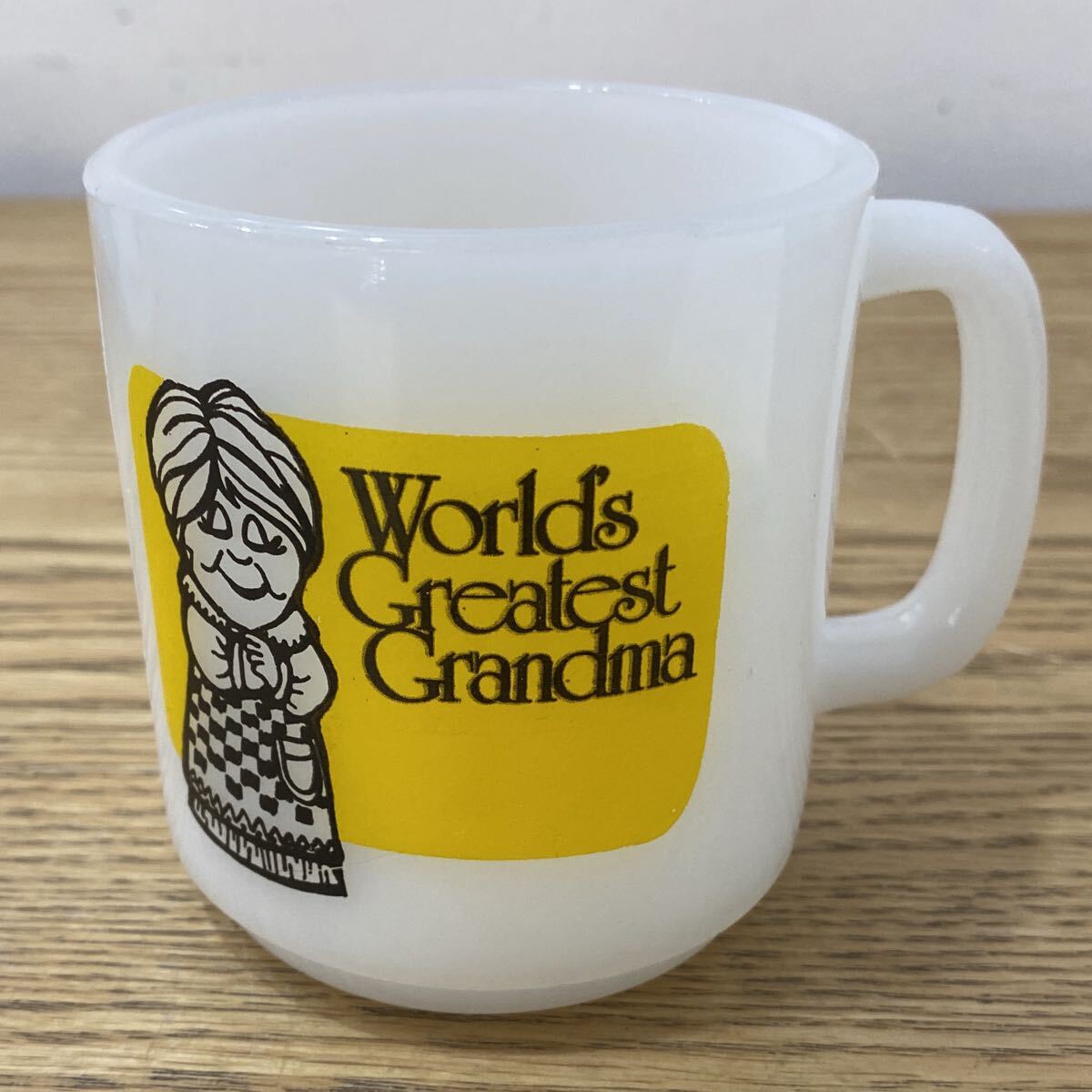 D5E063◆ グラスベイク Glasbake World's Greatest Grandma ミルクガラス マグカップ ヴィンテージ アメリカン雑貨