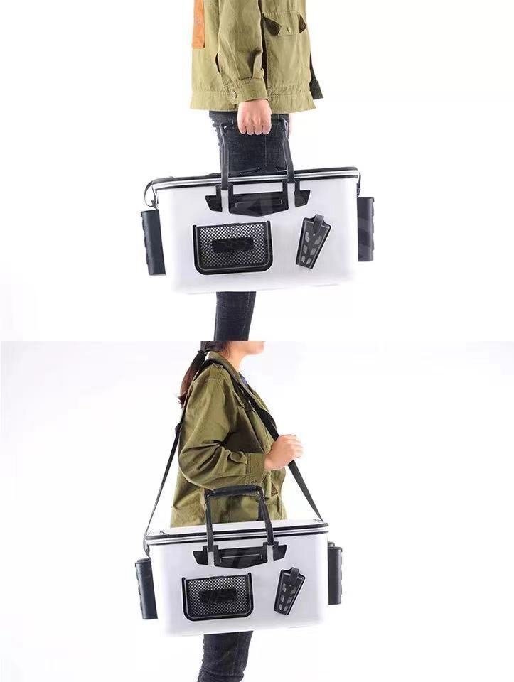 【商品情報 】バッカン耐久性も抜群! ベルト付きタイプは持ち運びに便利 携帯便利なショルダーベルトなど使い易さにこだわったタックルバック 水洗いしやすい、特殊エンボス加工を施したEVA生地は