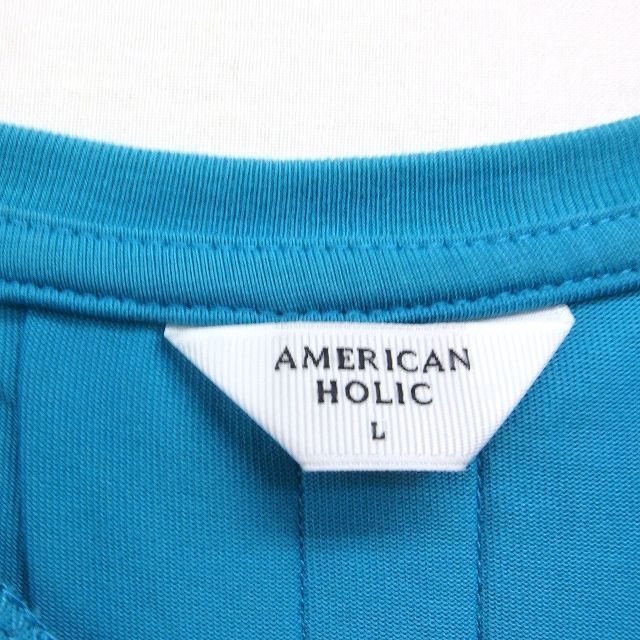 アメリカンホリック AMERICAN HOLIC 半袖 カットソー Tシャツ 丸首 バックタック 無地 綿 L ブルー 青 /FT38 レディース