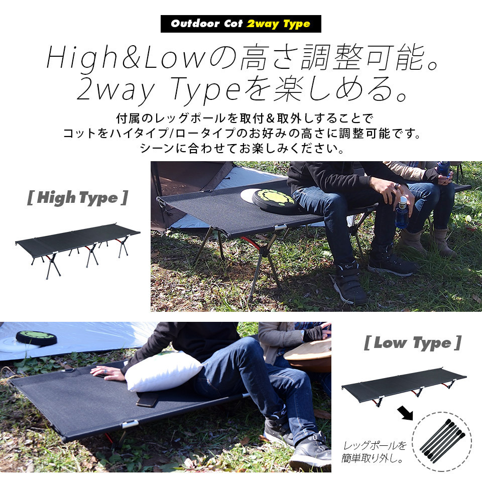 ハイ&ロー 2Wayタイプのアウトドアコットです。 |