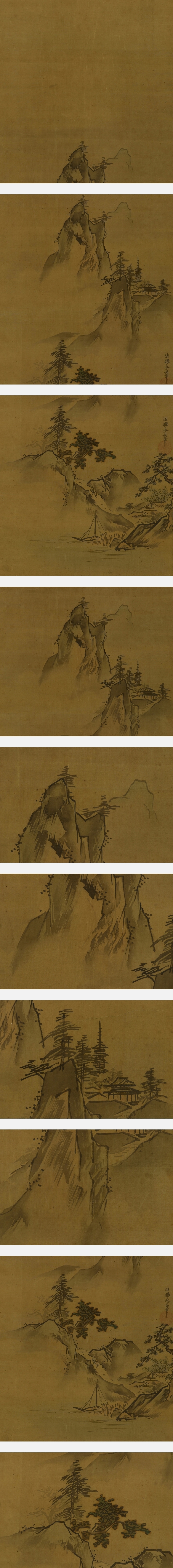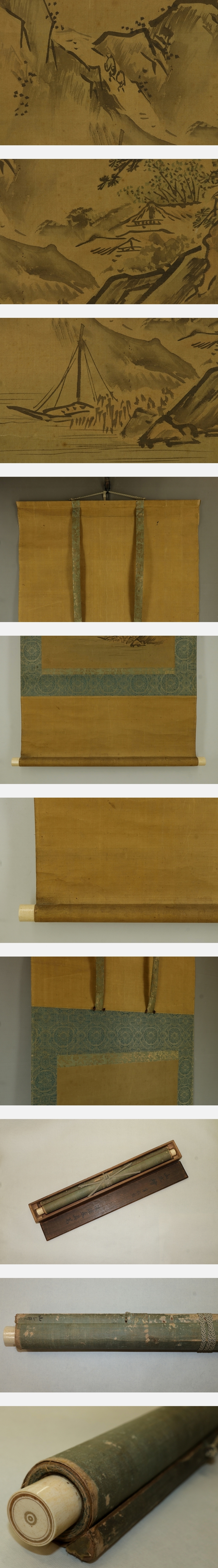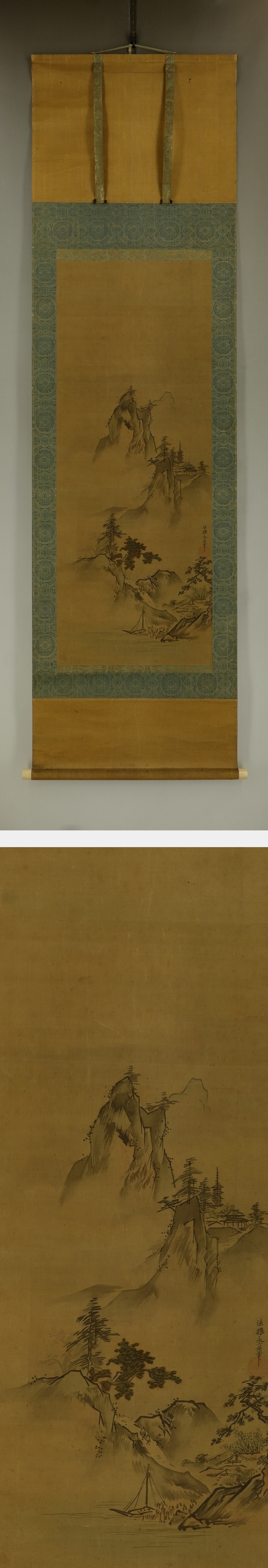 | №2502031【模写】狩野安信(永真)【淡彩山水】◆絹本◆合箱◆掛軸 | |