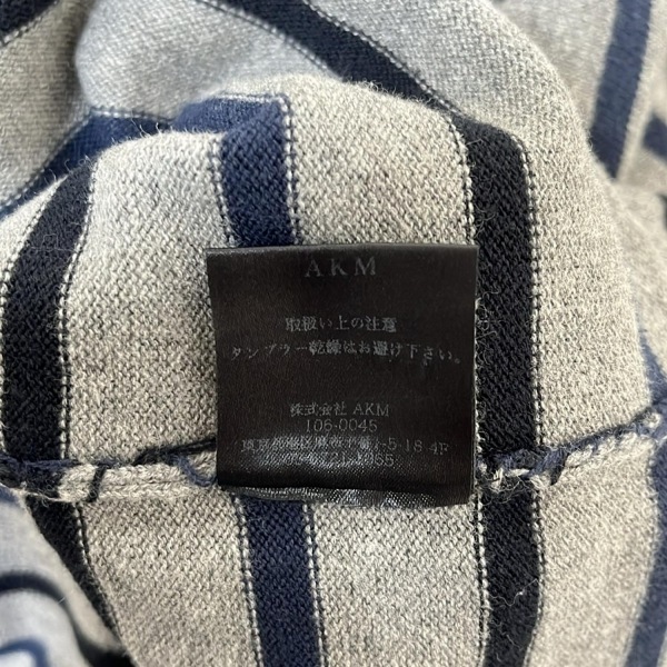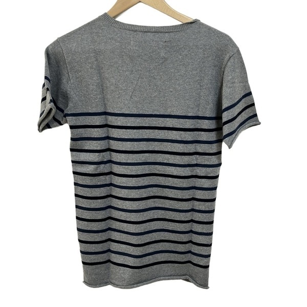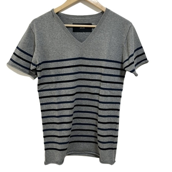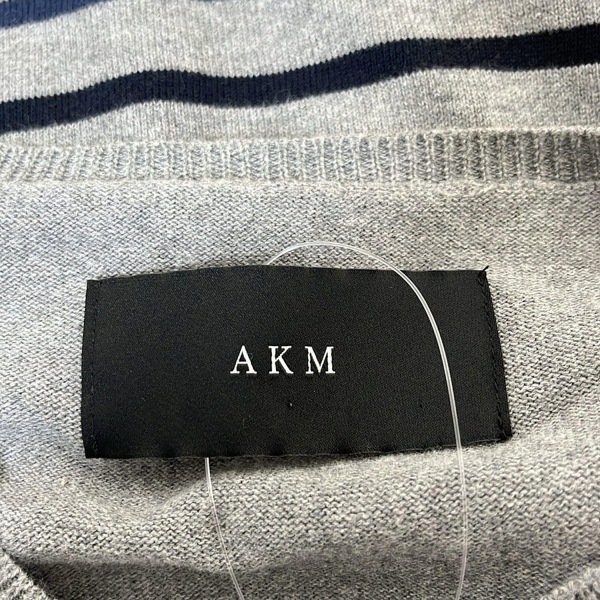 エーケーエム AKM 半袖セーター/ニット サイズS - グレー×ブルー×ダークネイビー レディース Vネック/ボーダー トップス