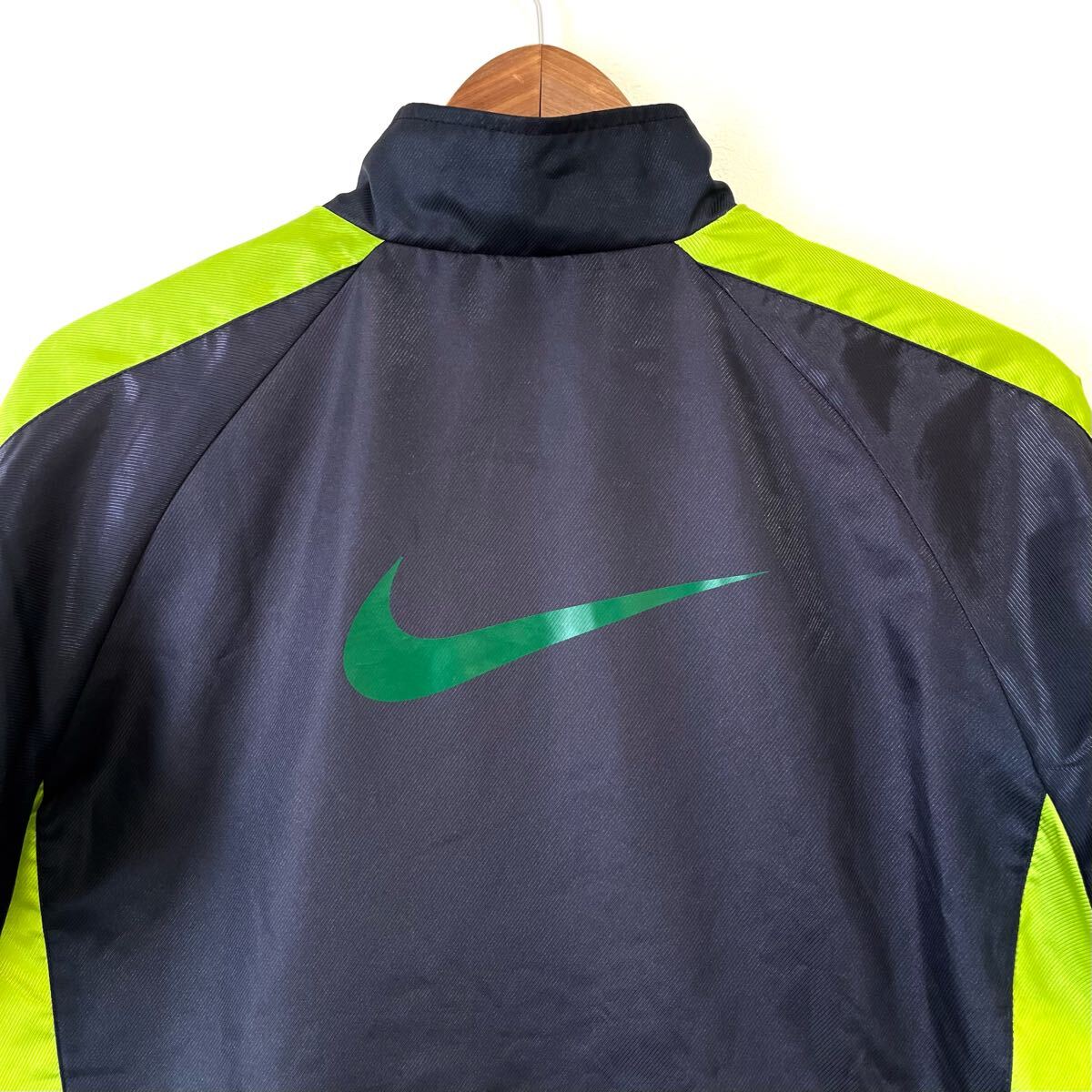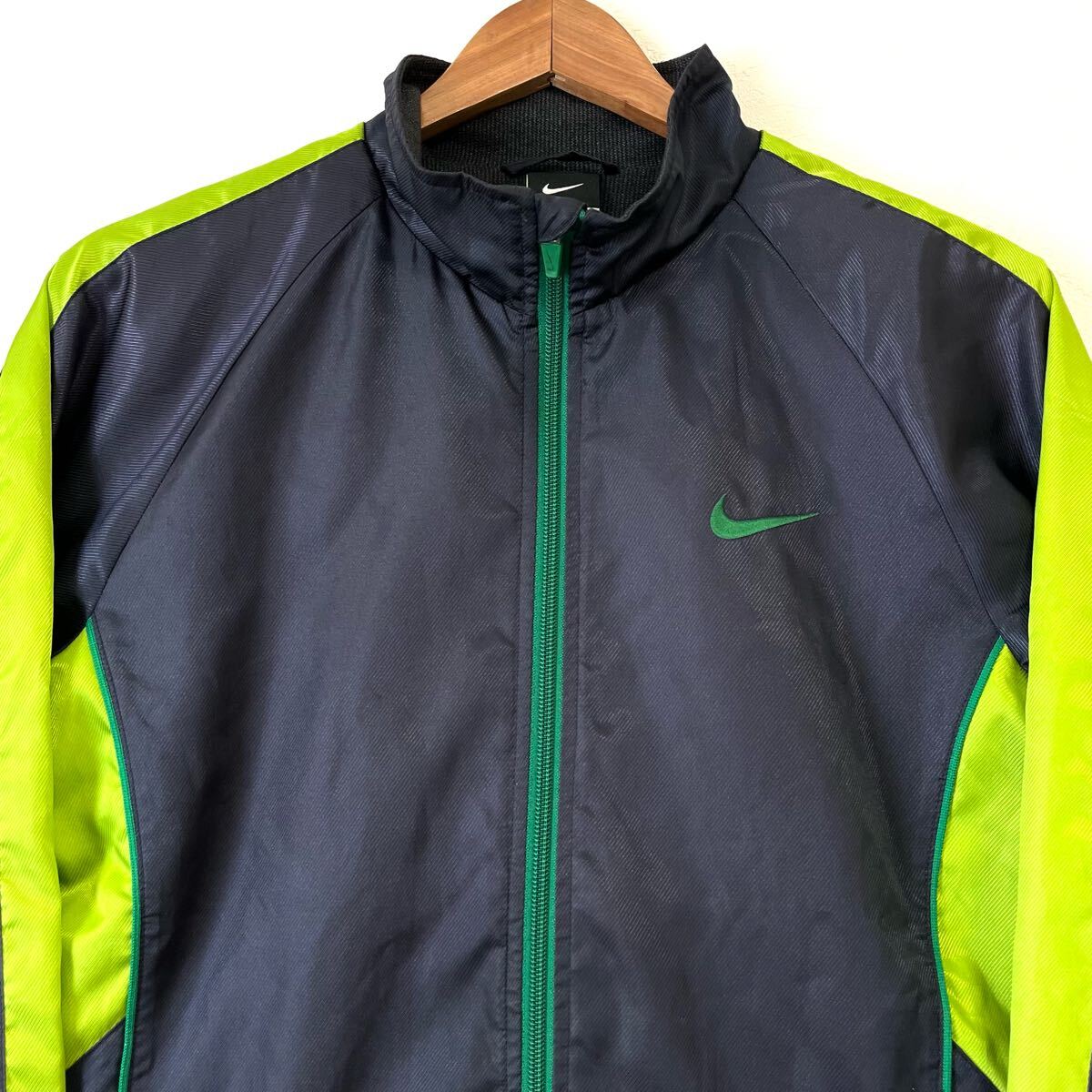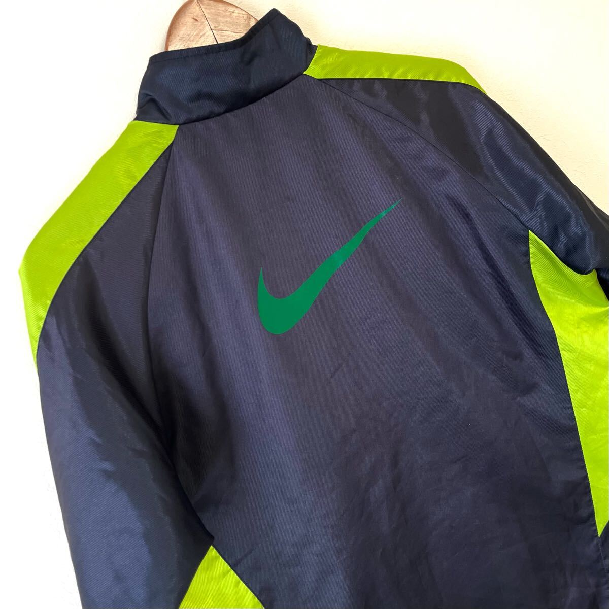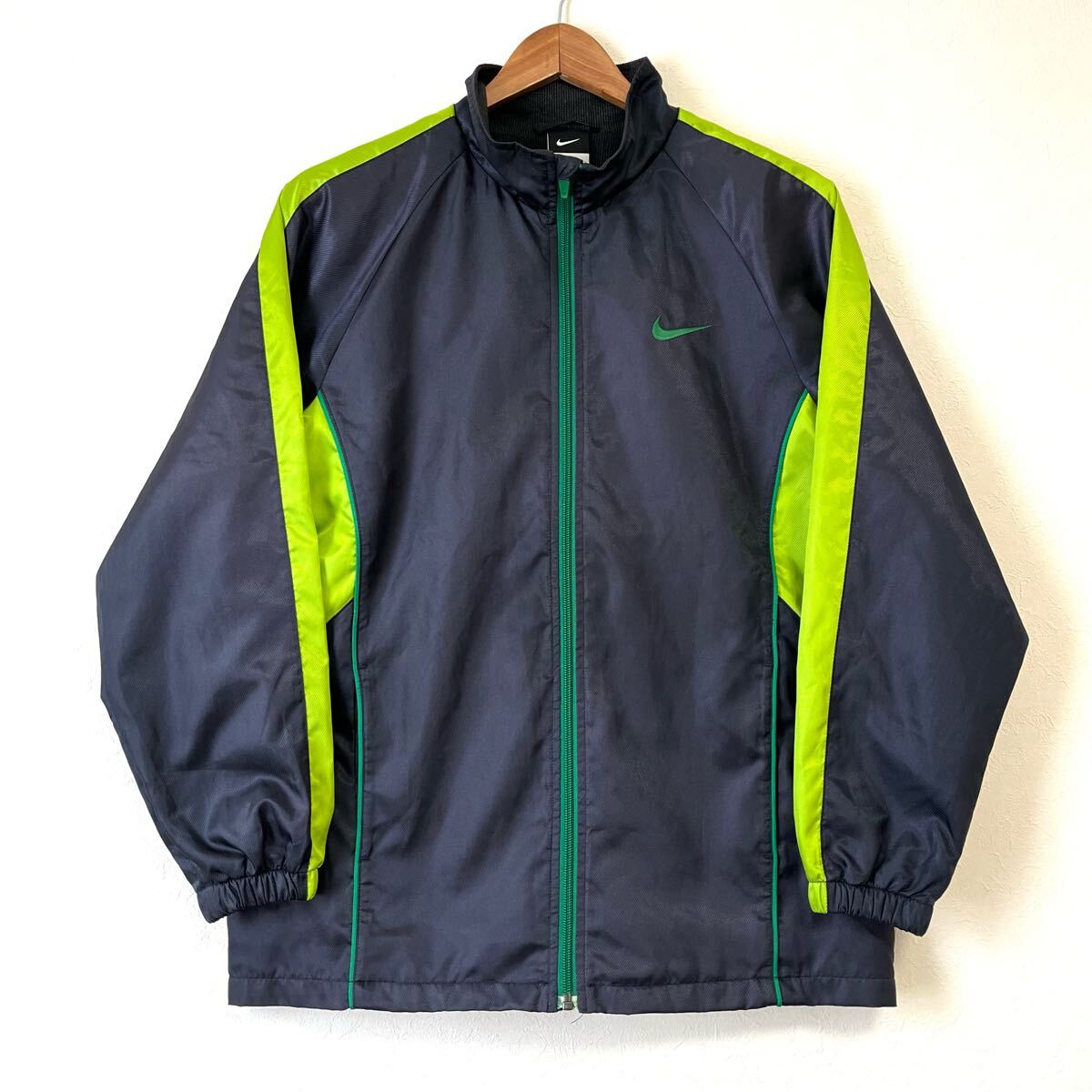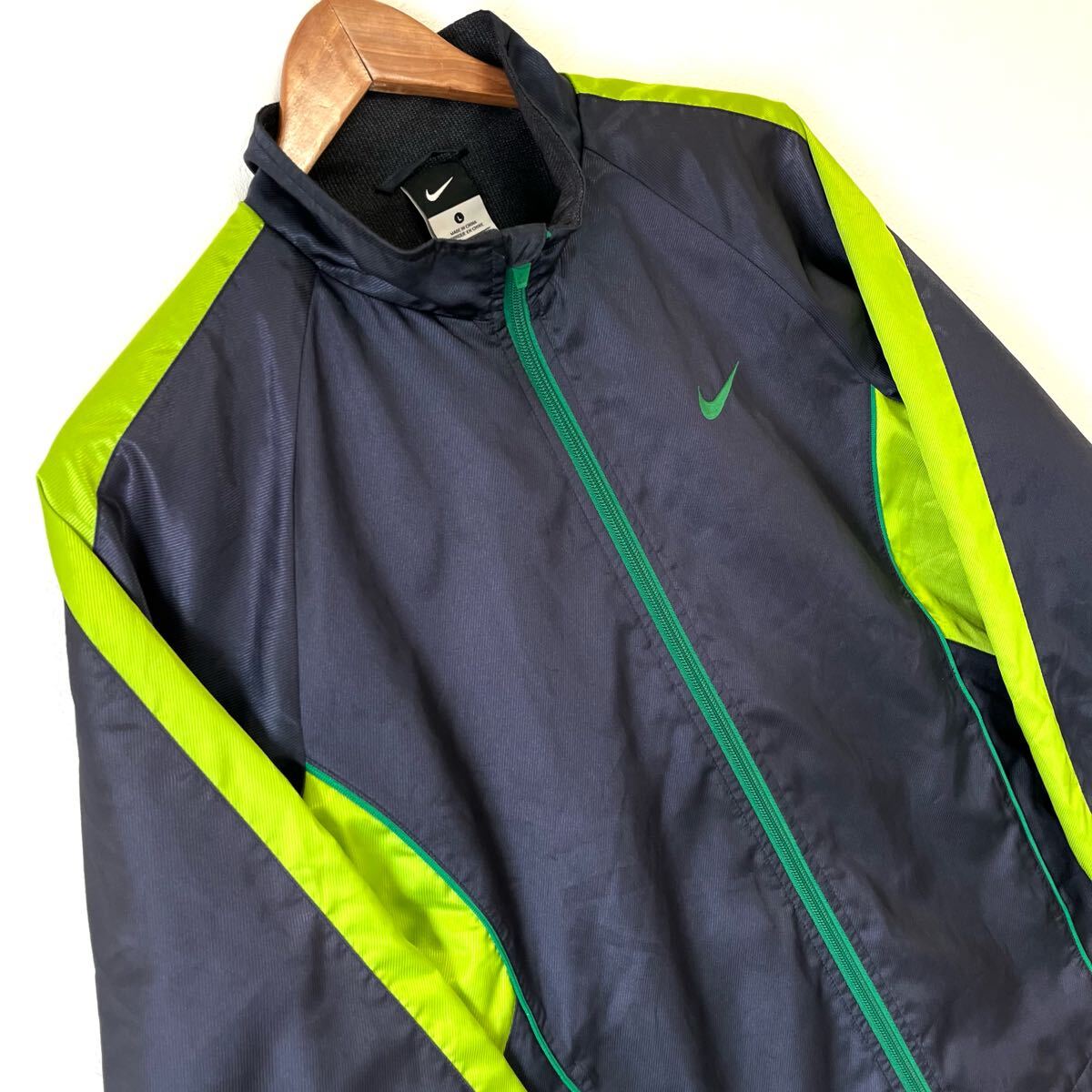NIKE のウィンドブレーカーです。軽い着心地ながら裏地付きで防風・防寒性も抜群!スポーツやアウトドアでの体温調節にぴったり◎デザインもカッコいいです◎若干の着用感のみで目立つダメージもなくオススメです!