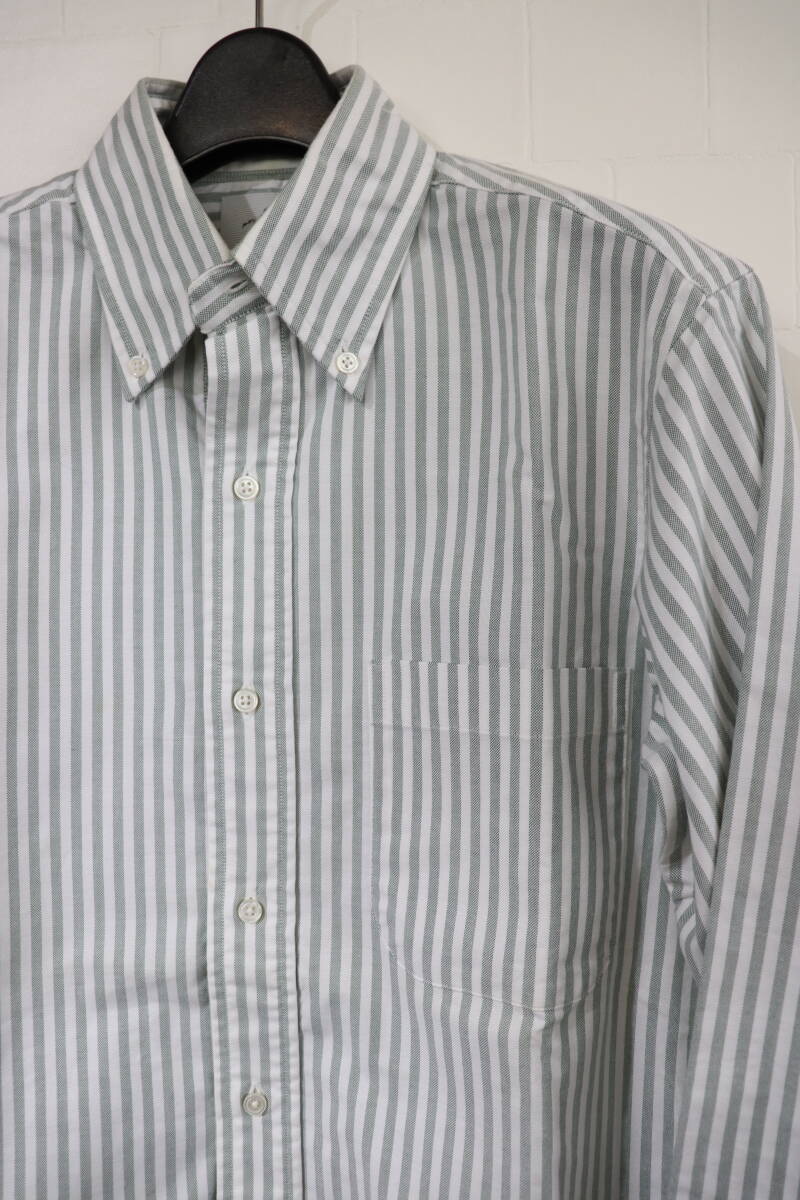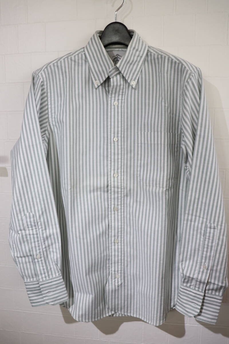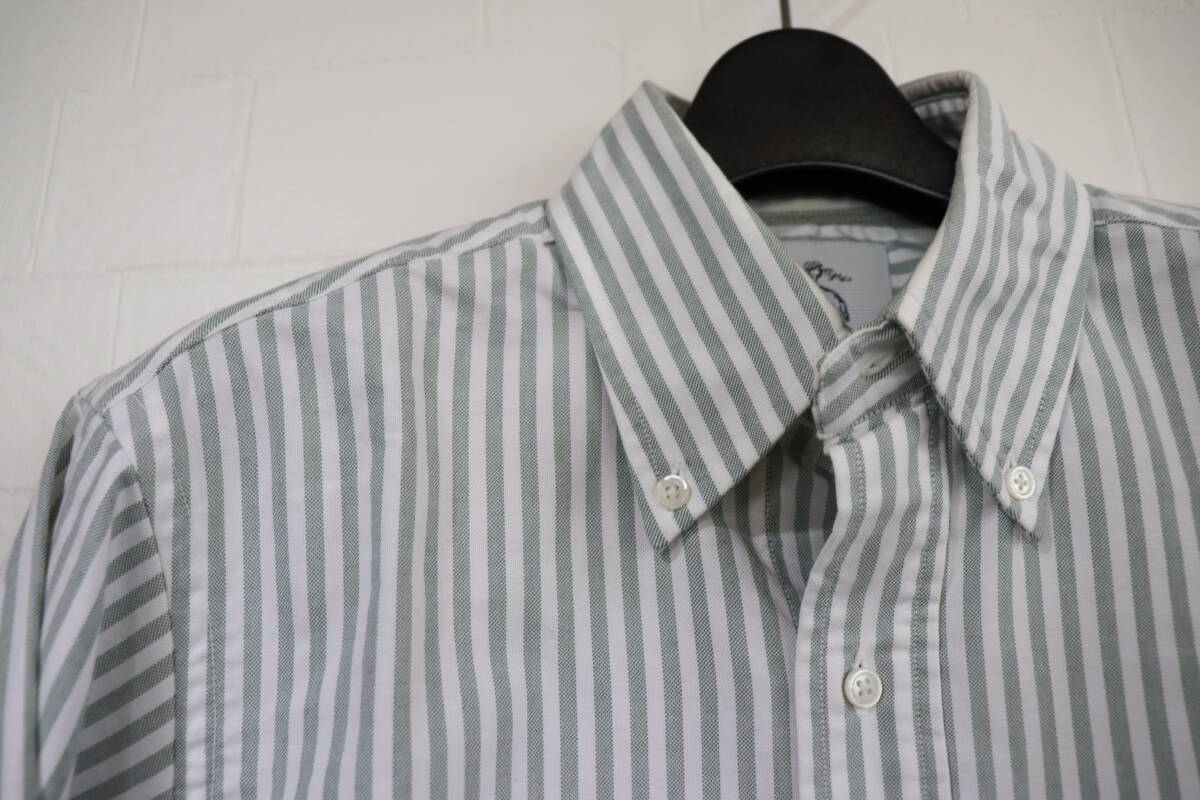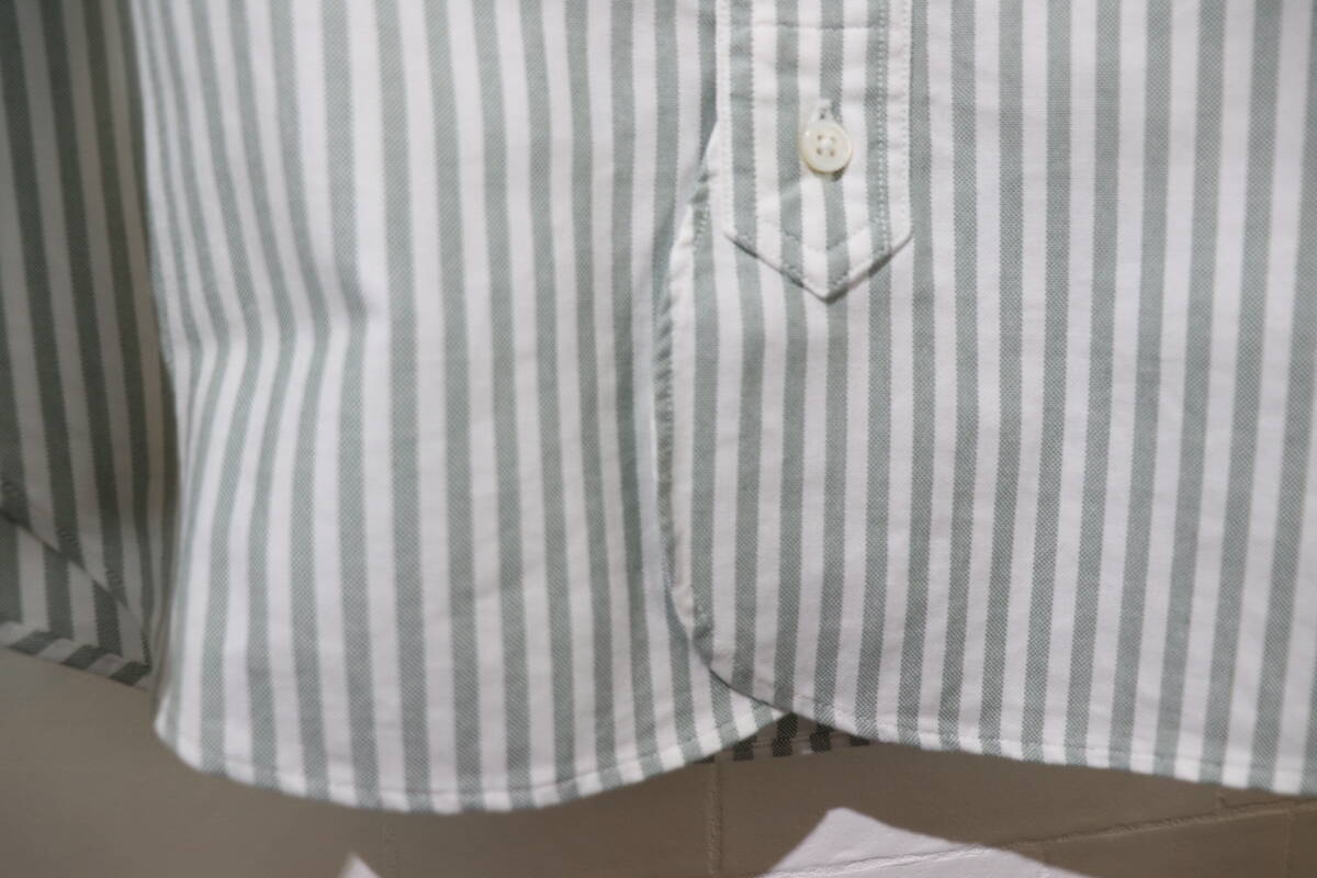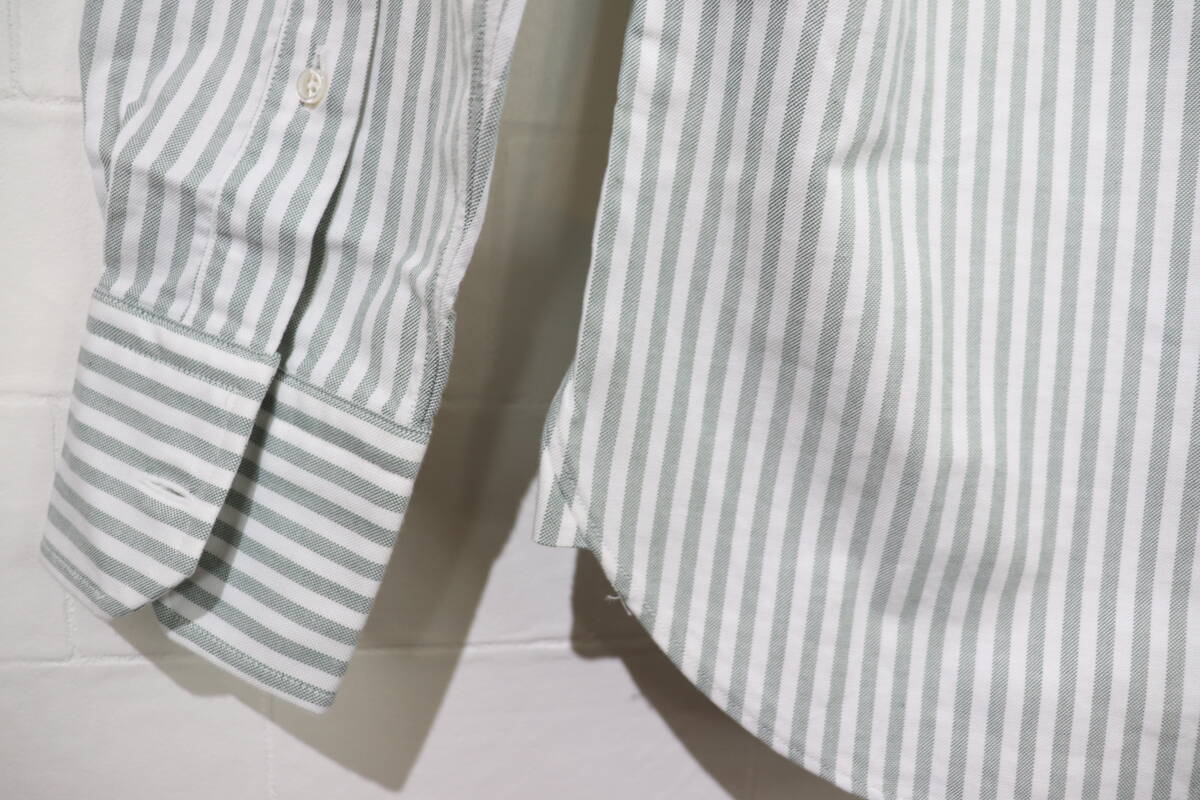 『名作   BLACK FLEECE BY Brooks Brothers    ストライプ柄     長袖ドレスシャツ    メンズBB00表記   くすんだグリーン×ホワイト系』