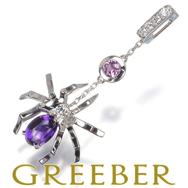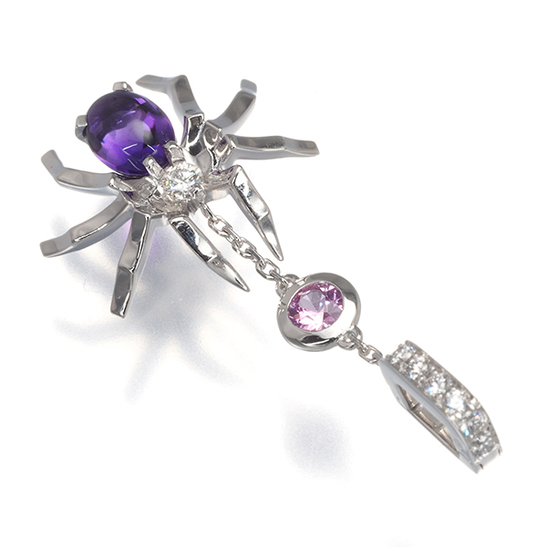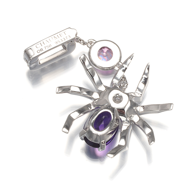 ショーメのアトラップモワコレクションより こちらはスパイダーをデザインしたペンダントトップ。アメジストや上質ダイヤモンドの輝きと共に胸元に優雅な雰囲気を与えてくれる逸品です。 |