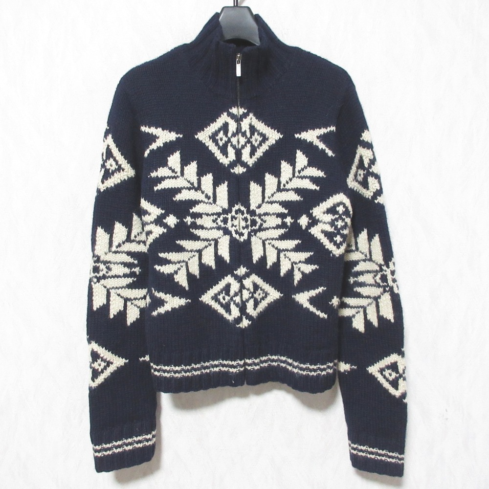 商品名:RALPH LAUREN ラルフローレン ノルディック柄 アンゴラブレンド ニットジャケット ジップブルゾン M ネイビー