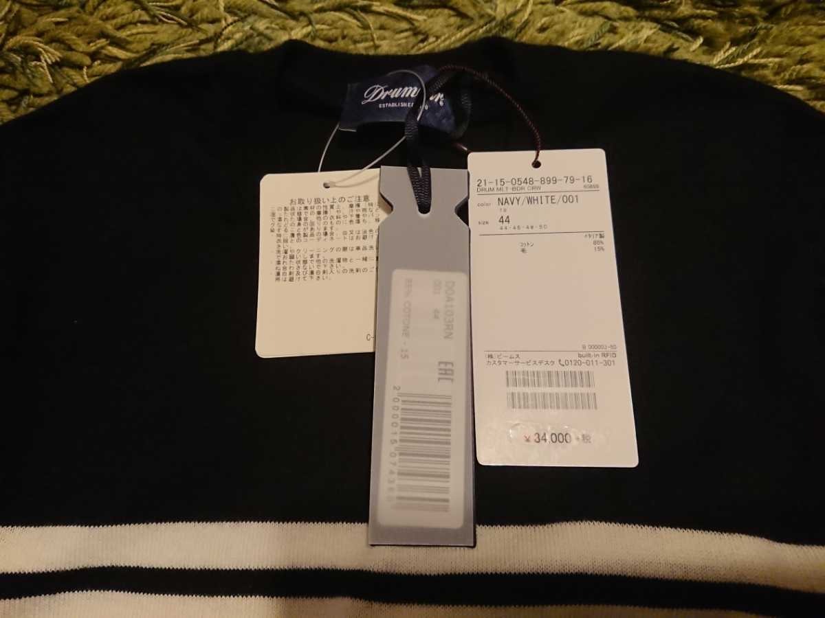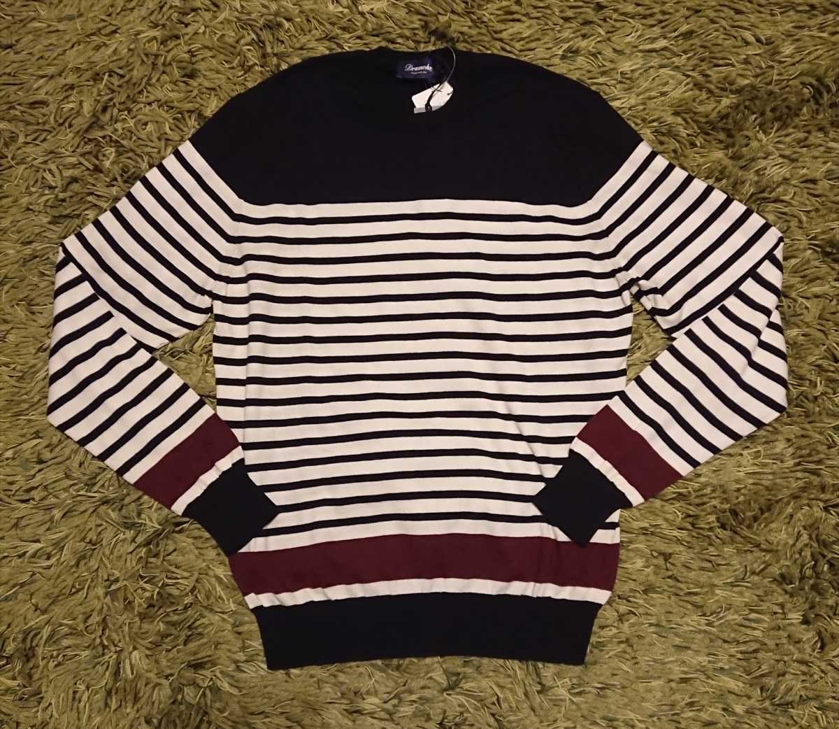 ドルモア*ビームス購入 コットン クルーネックニット ボーダー ネイビー×ホワイト×ボルドー 44/ジョンスメドレーグランサッソ