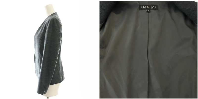 インディヴィ INDIVI ウール混 ノーカラージャケット スカート セットアップ スーツ 05 チャコールグレー /ES ■OS レディース