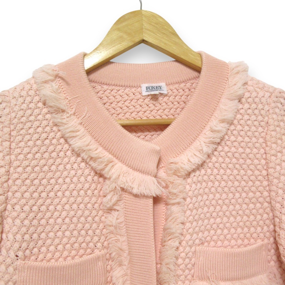 美品 FOXEY BOUTIQUE フォクシー ブティック ウール ツイードニット ノーカラージャケット コート サイズ40 ピンク