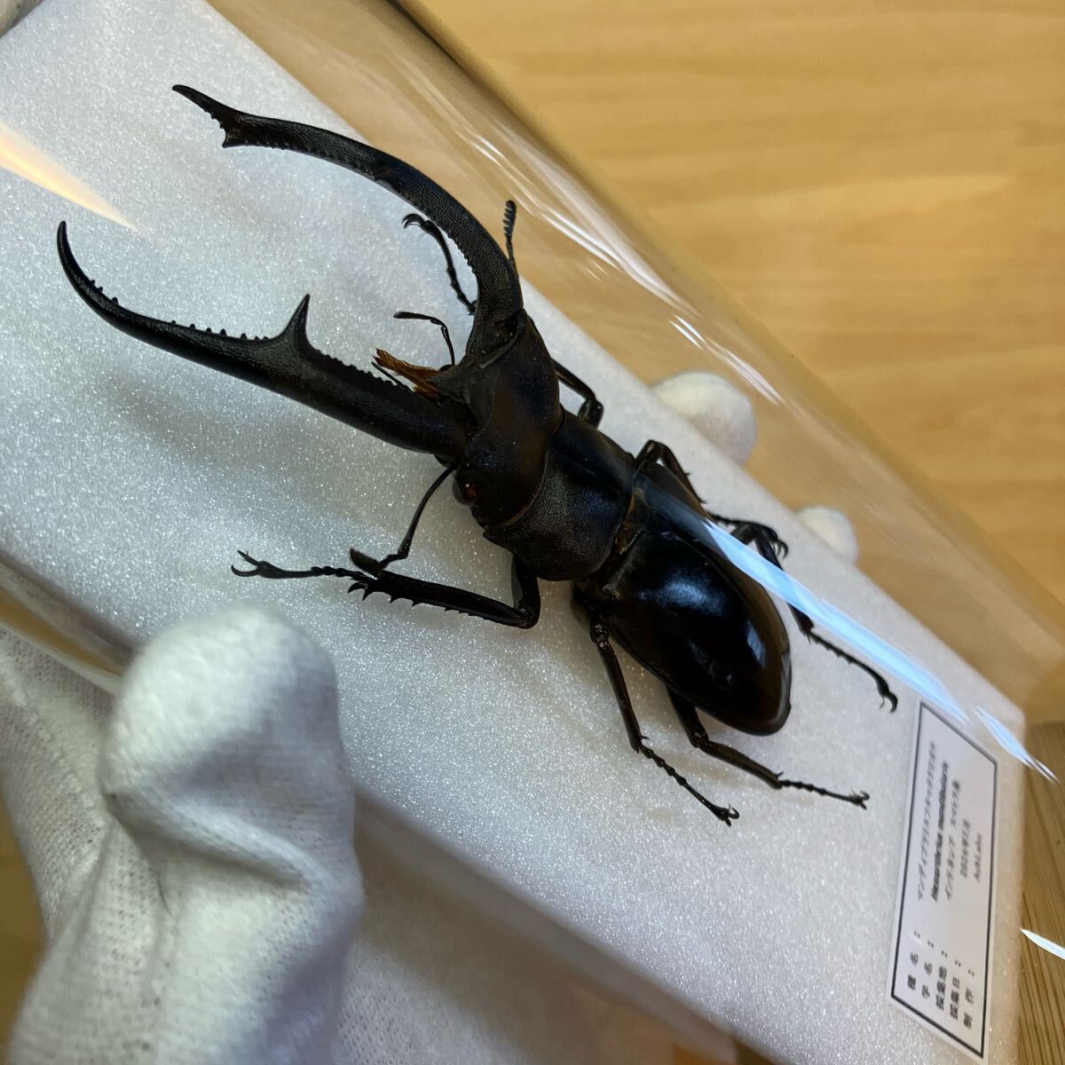 マンディブラリスフタマタクワガタ♂(91mm・野外品)のガラスケース標本になります。