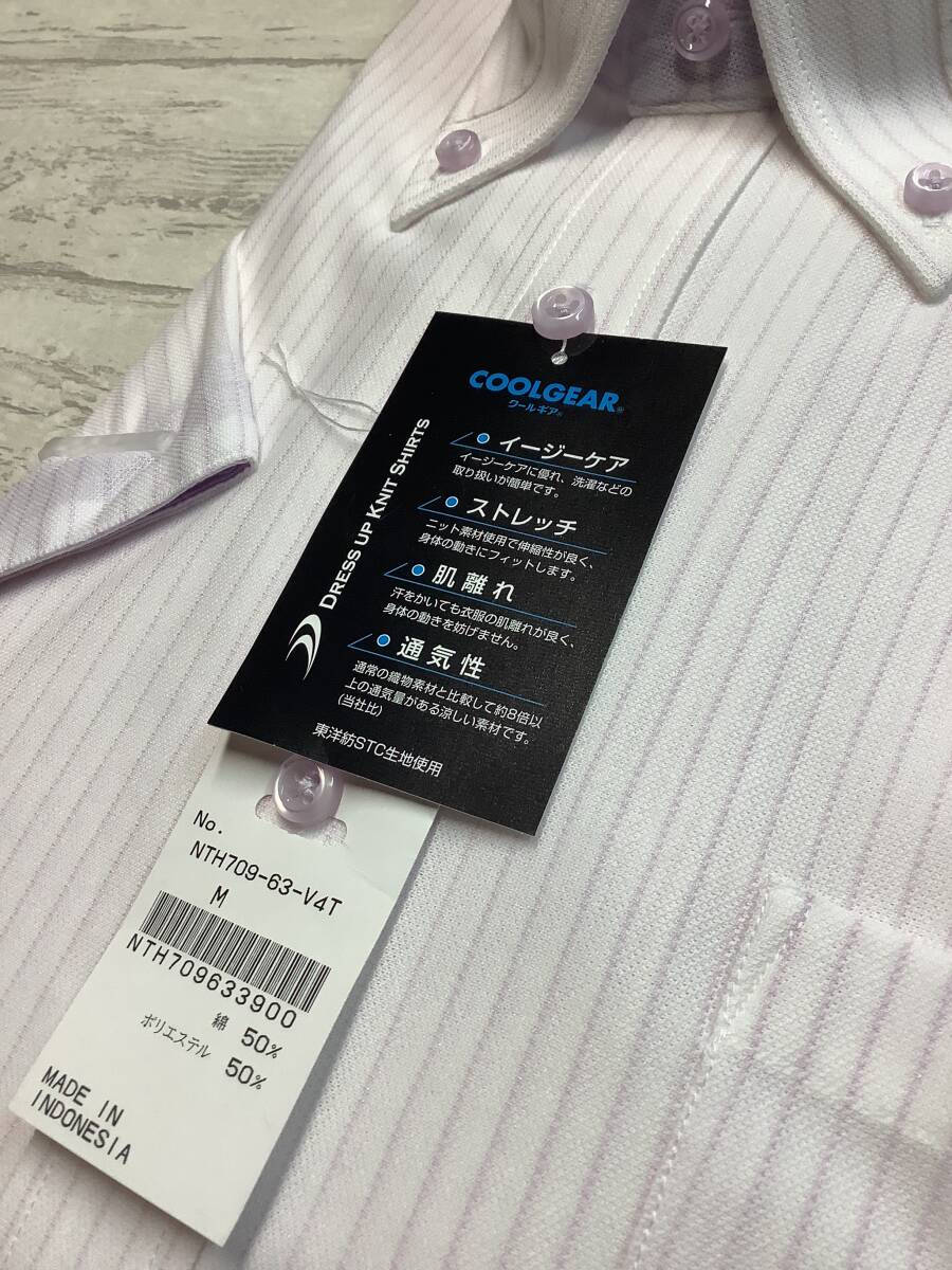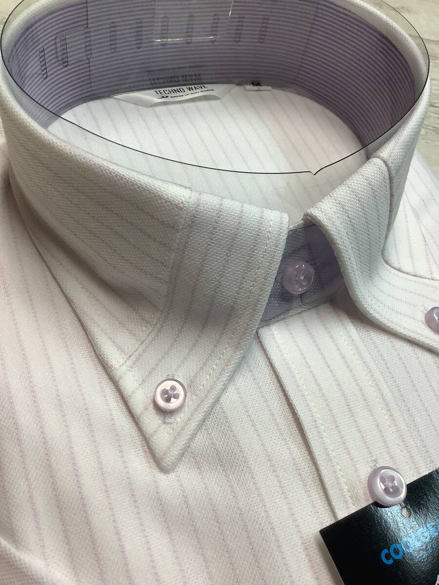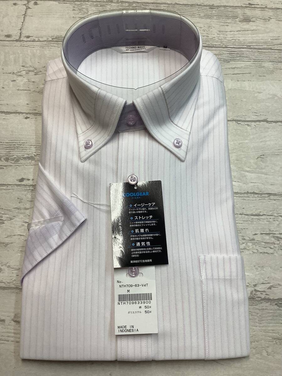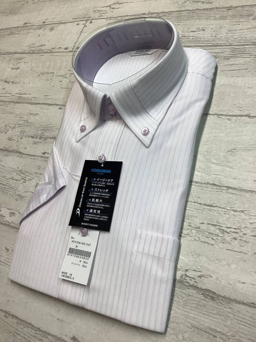 新品 39Mサイズ半袖 ★ピンクストライプ ★ボタンダウンカッターシャツ★ 定価4,900円ワイシャツ ★形態安定加工 ストレッチ素材