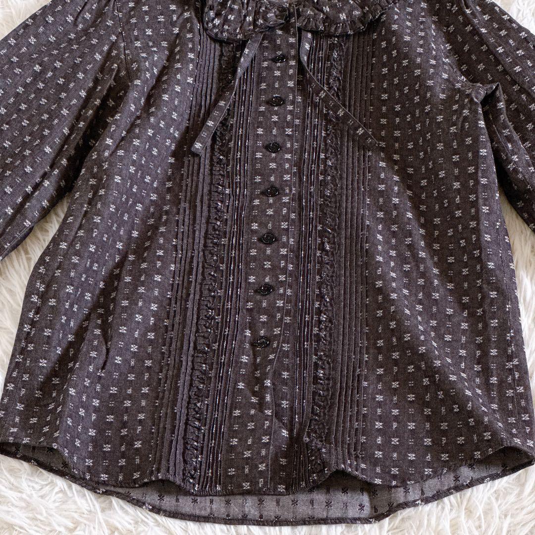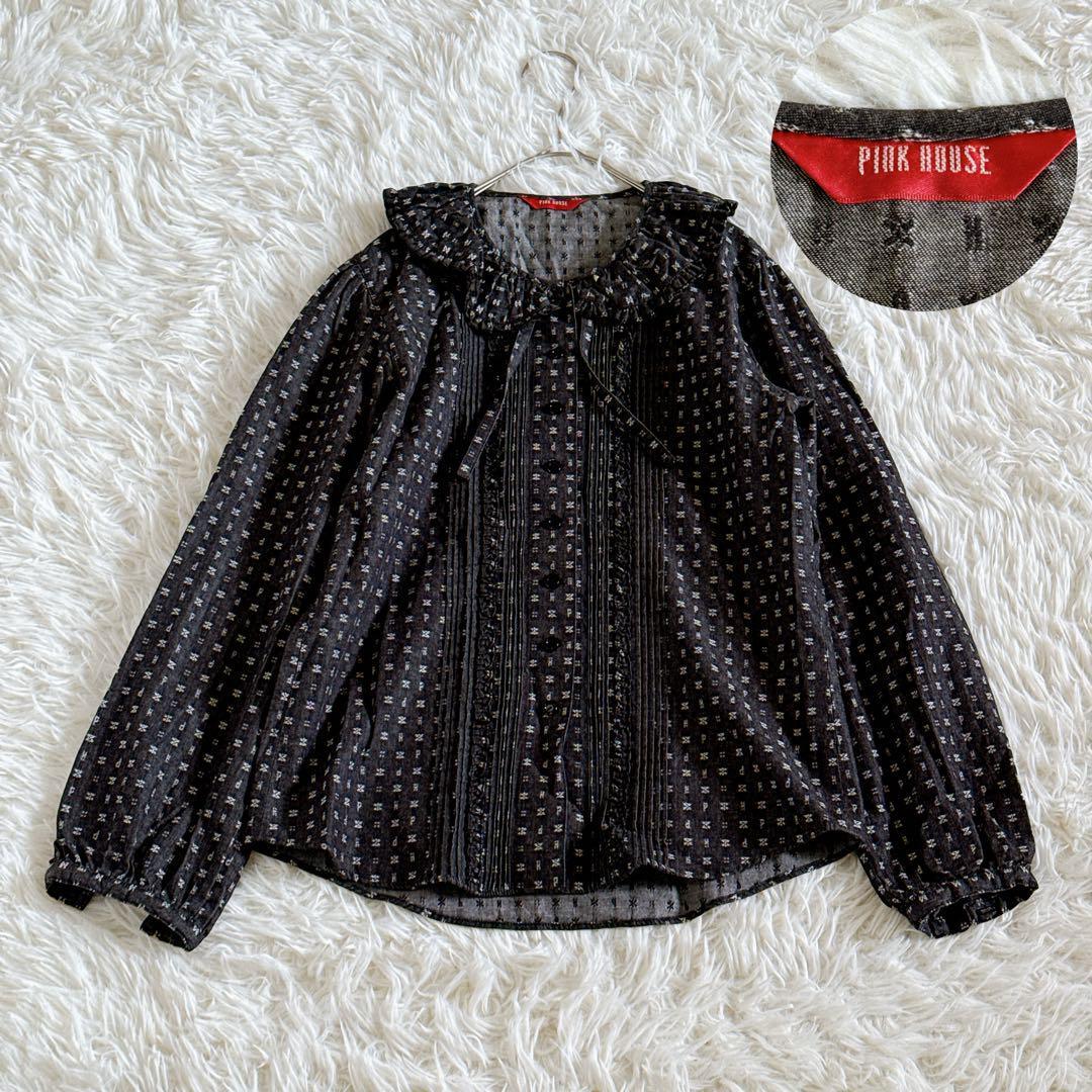 ピンクハウス ブラウス フリル ボウタイ リボンシャツ ロマンティック 総柄 花柄 刺繍 ブラック コットン 長袖 レディース シャツブラウス 量産系 ロリータ カジュアル ガーリー 春服 秋服