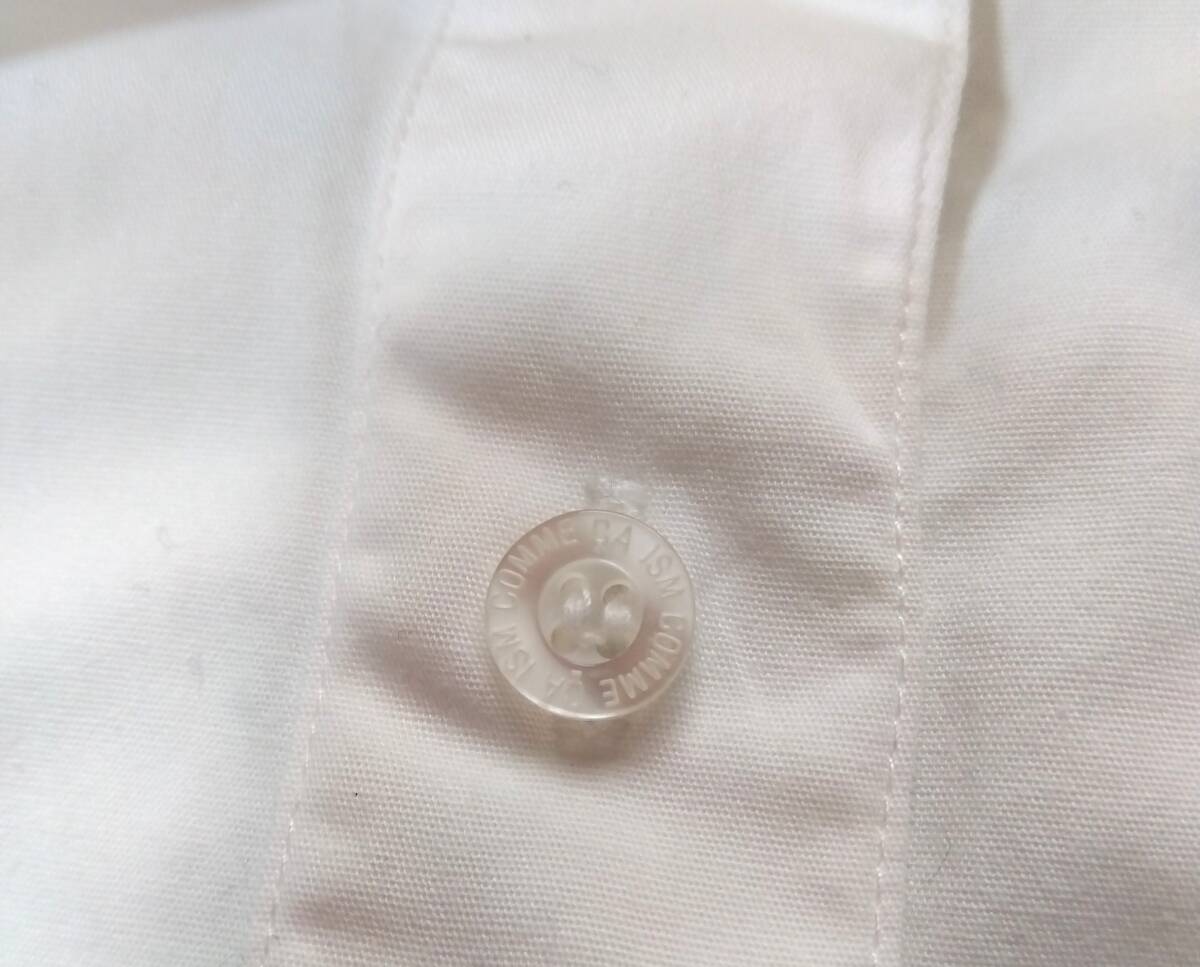 ・色 白。ボタン1つ1つにロゴ文字刻印。