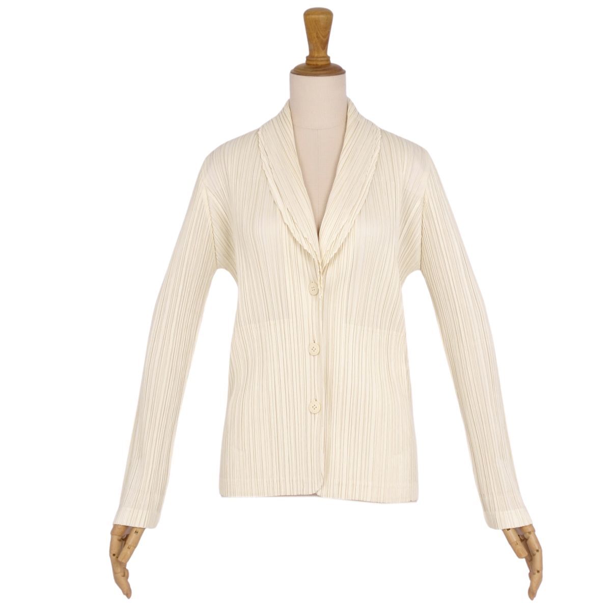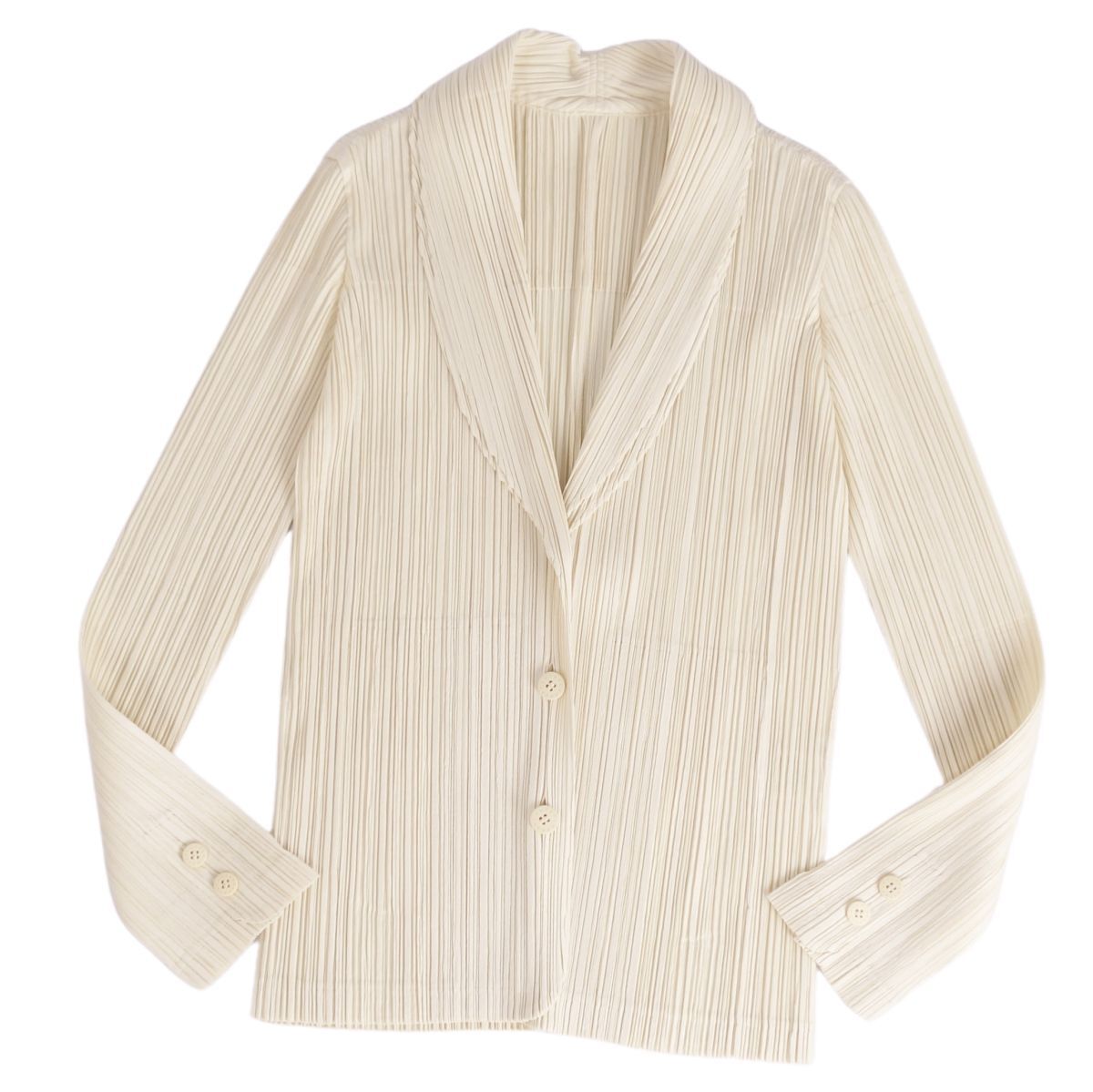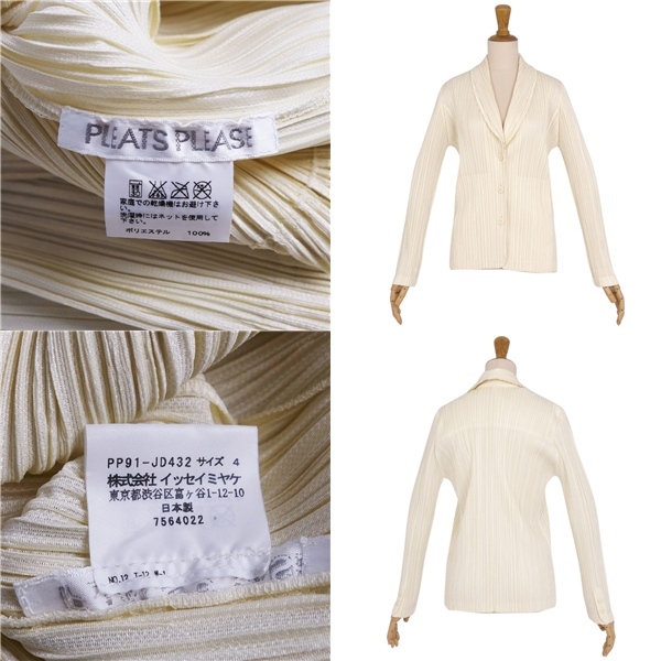 | 極美品 プリーツプリーズ イッセイミヤケ PLEATS PLEASE ジャケット テーラード ロゴボタン アウター 4(XL相当)ホワイト |