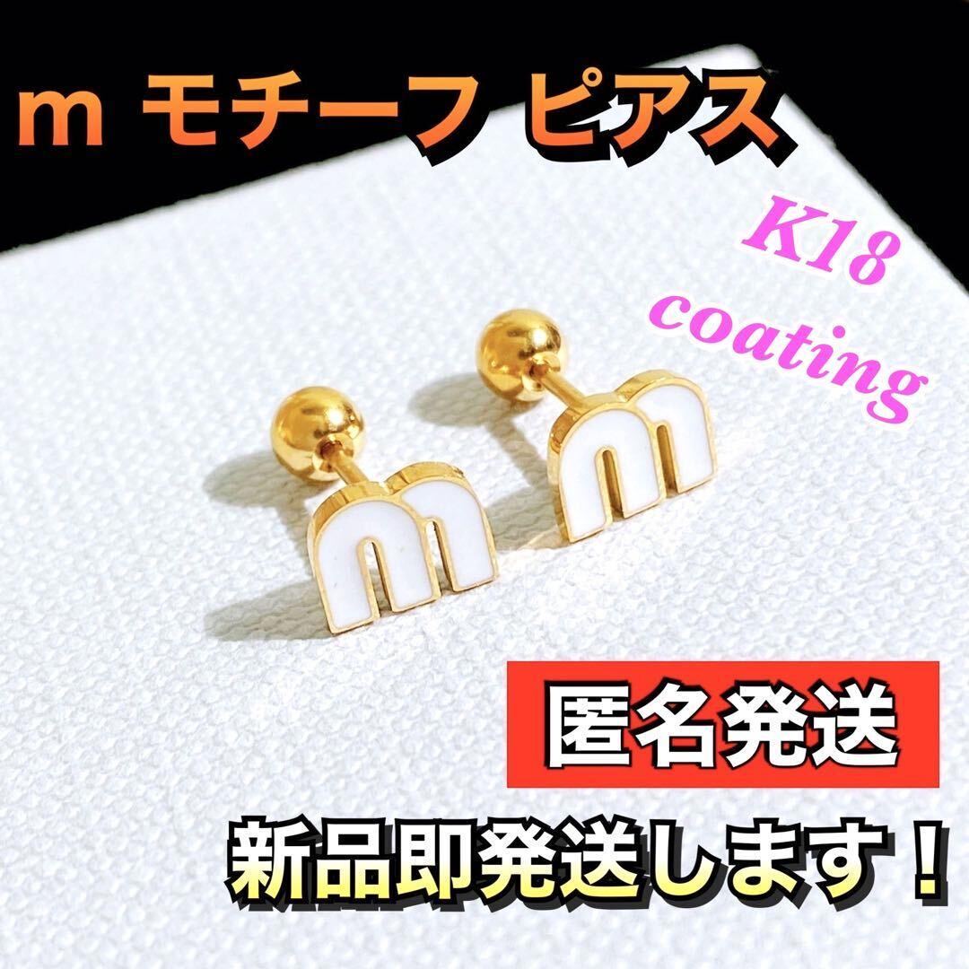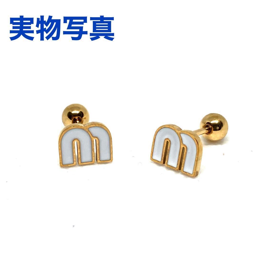 人気のシンプルかつポップなデザインのm ロゴ ピアスです。