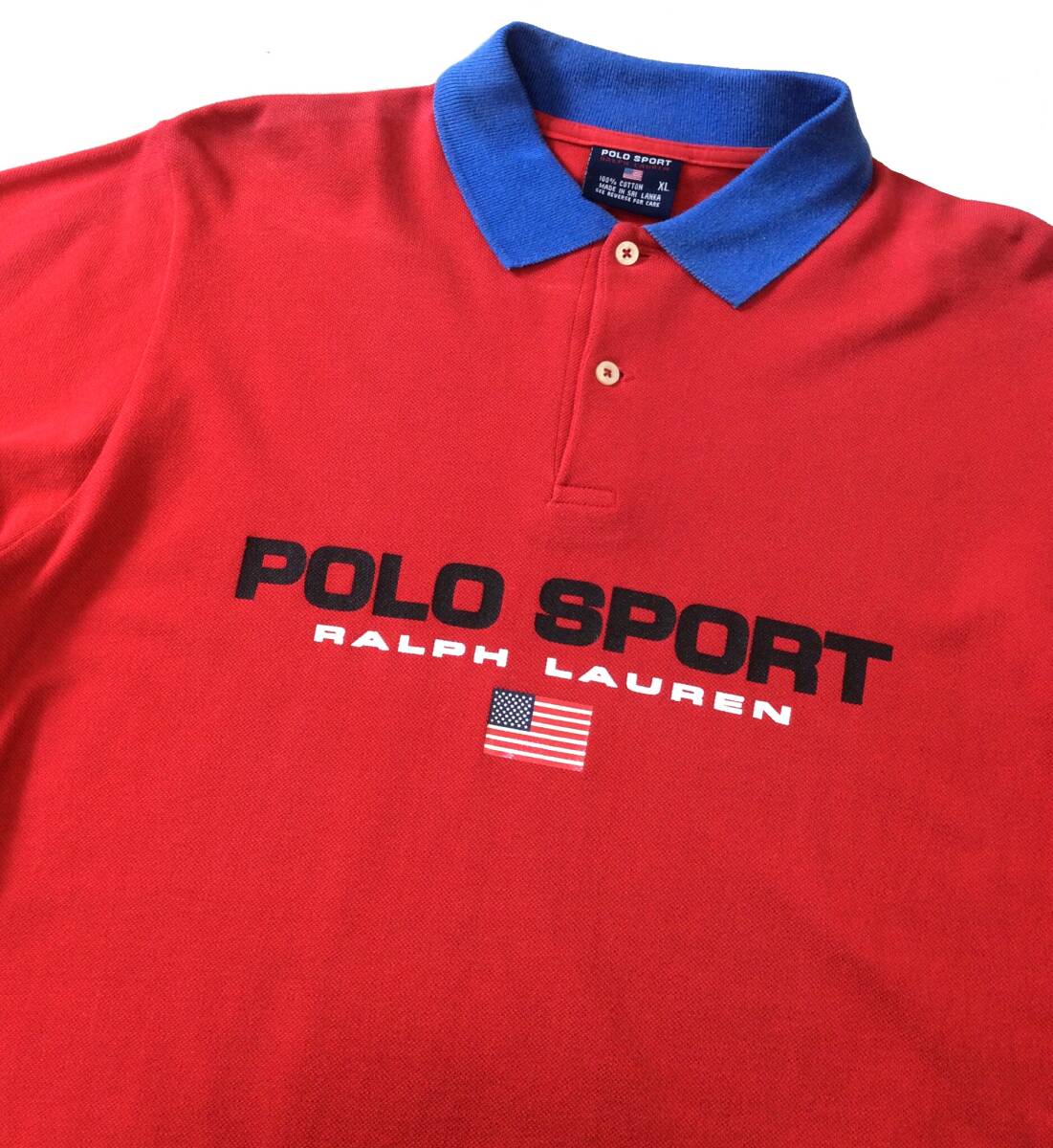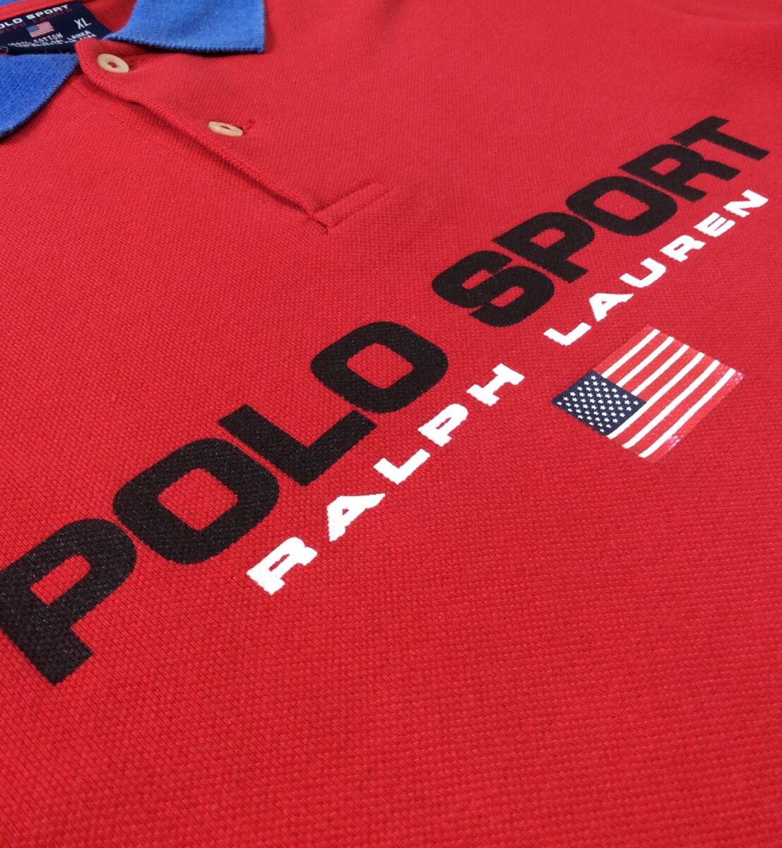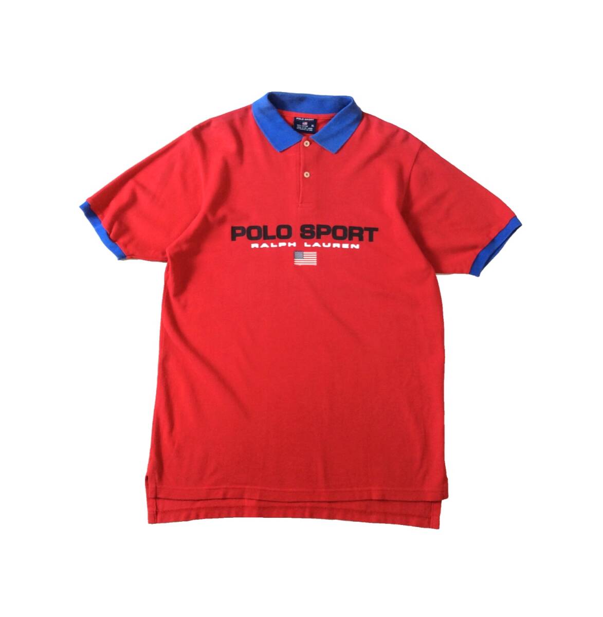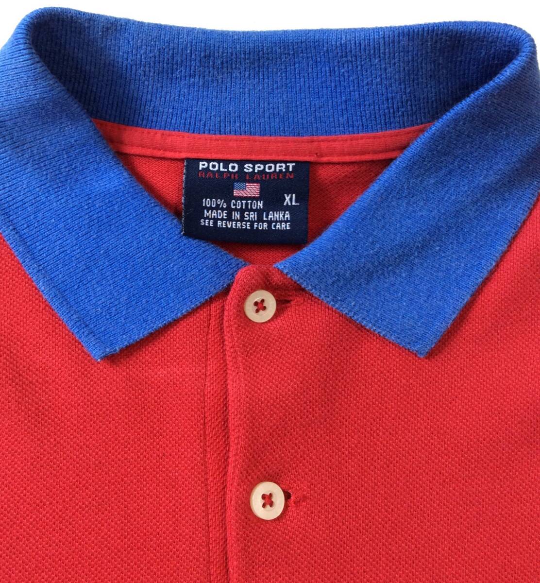 POLO SPORT RALPH LAUREN ポロスポーツ ラルフローレン 90s 半袖 ポロシャツ レッド/ブルー ロゴ メンズ XL