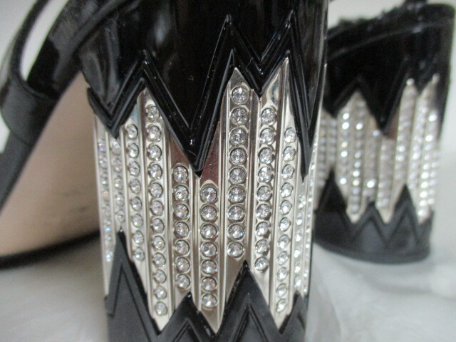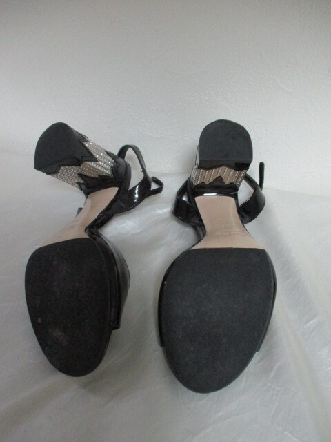 商品紹介 | エナメル素材がオシャレな黒のサンダルです。 ヒール部分にはラインストーンが付いていて、 ギザギザ模様になっています。 (121625) |