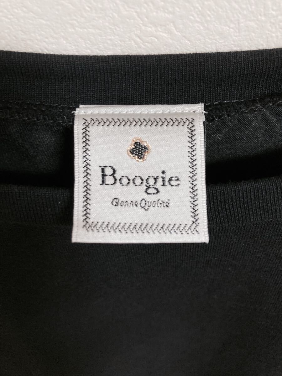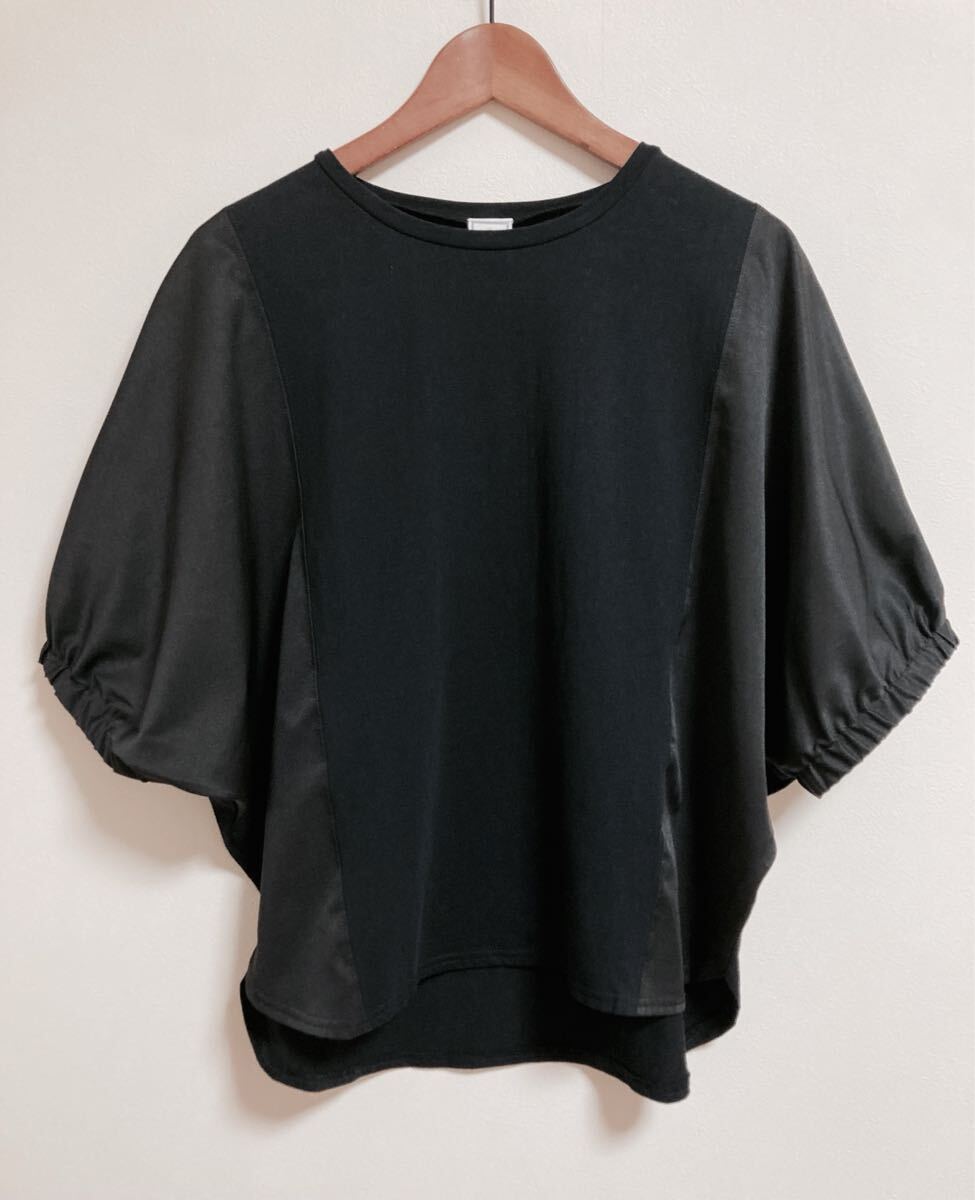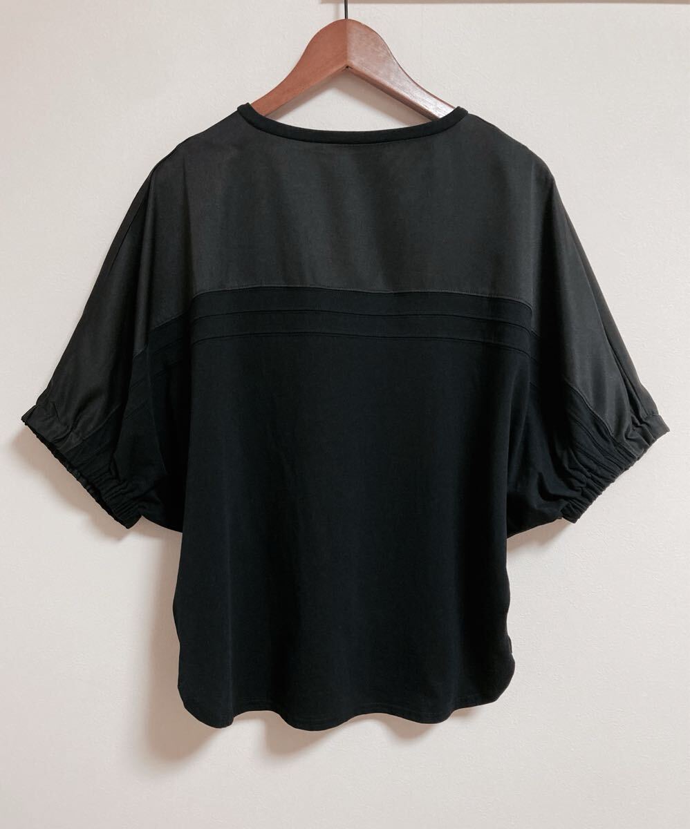 ブギウギで購入した、カットソー地とサテン地の異素材コンビがオシャレなカットソーですシンプルながらもデザイン性が光ります。