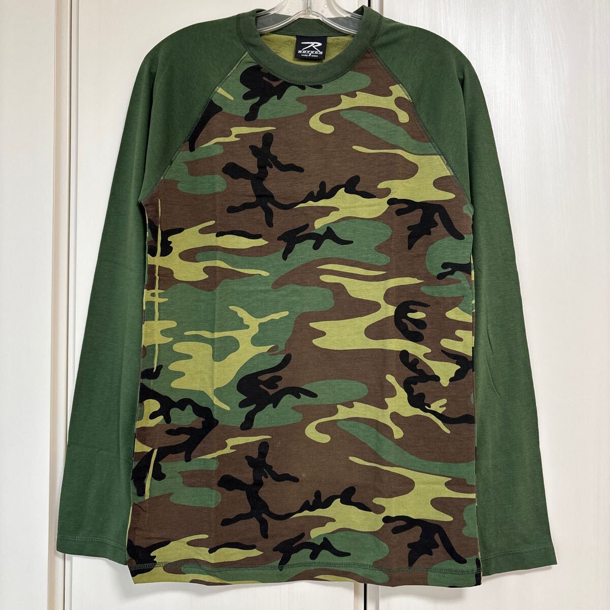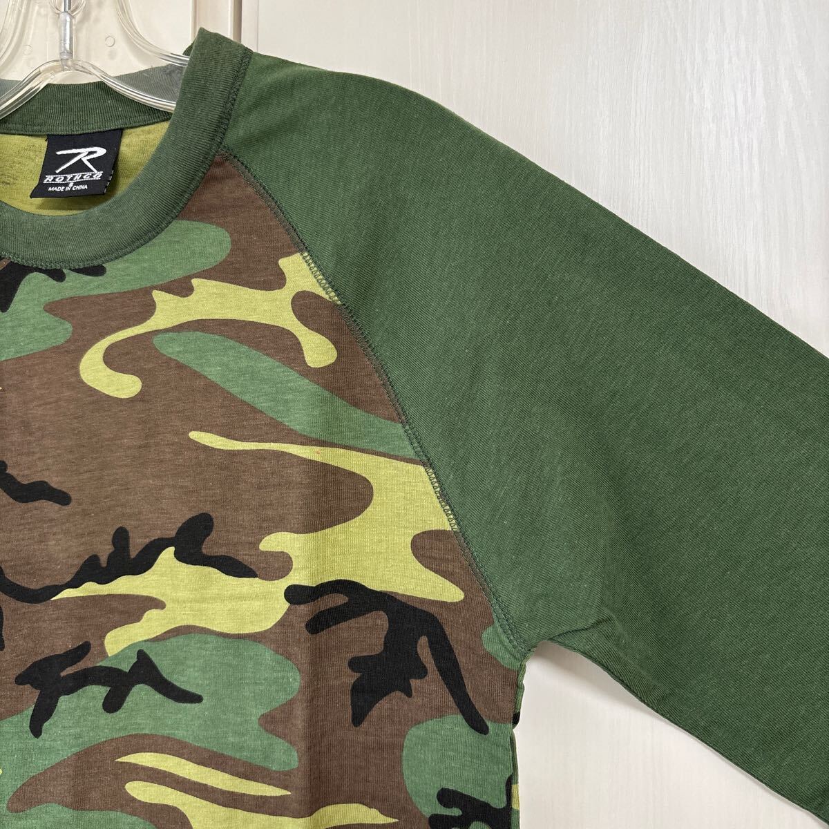 デッドストック 未着用 ROTHCO ロスコ オリーブ × ウッドランド (迷彩) ロングスリーブ Tシャツ 長袖 ロンT アンダーシャツ SMALL O.D.