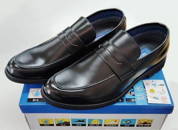 ZN5003 アウトレット メンズ ビジネスシューズ 29.0cm コインローファー トールシューズ シークレットシューズ 幅広 防水 撥水 ブラック ②