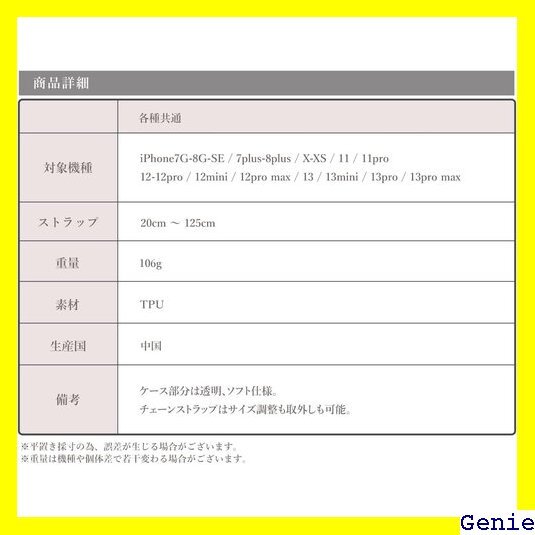 【特徴】チェーンストラップ/ケース部分透明・ソフト仕様/ストラップサイズ調整可・取外し可 ※製品の仕様上鋭利な部分がございます、パーツの取り外し等の際は手を挟まないよう十分ご注意ください。