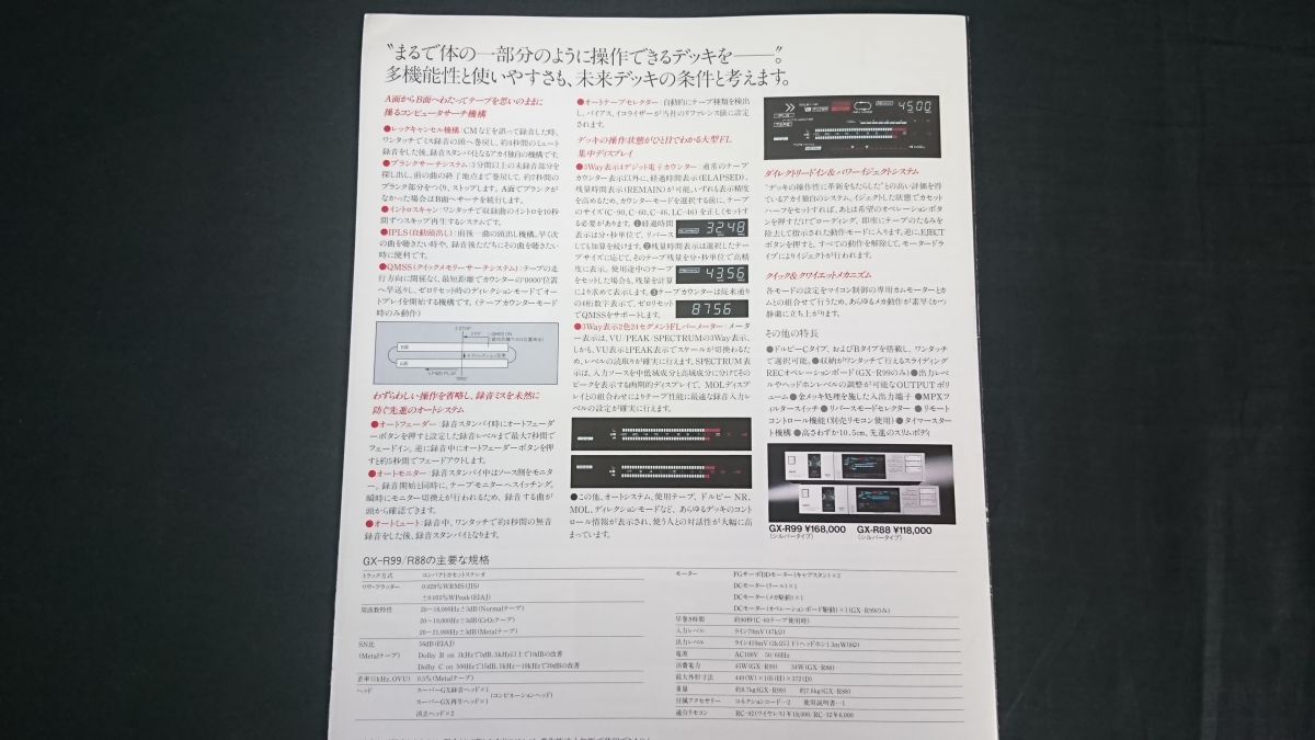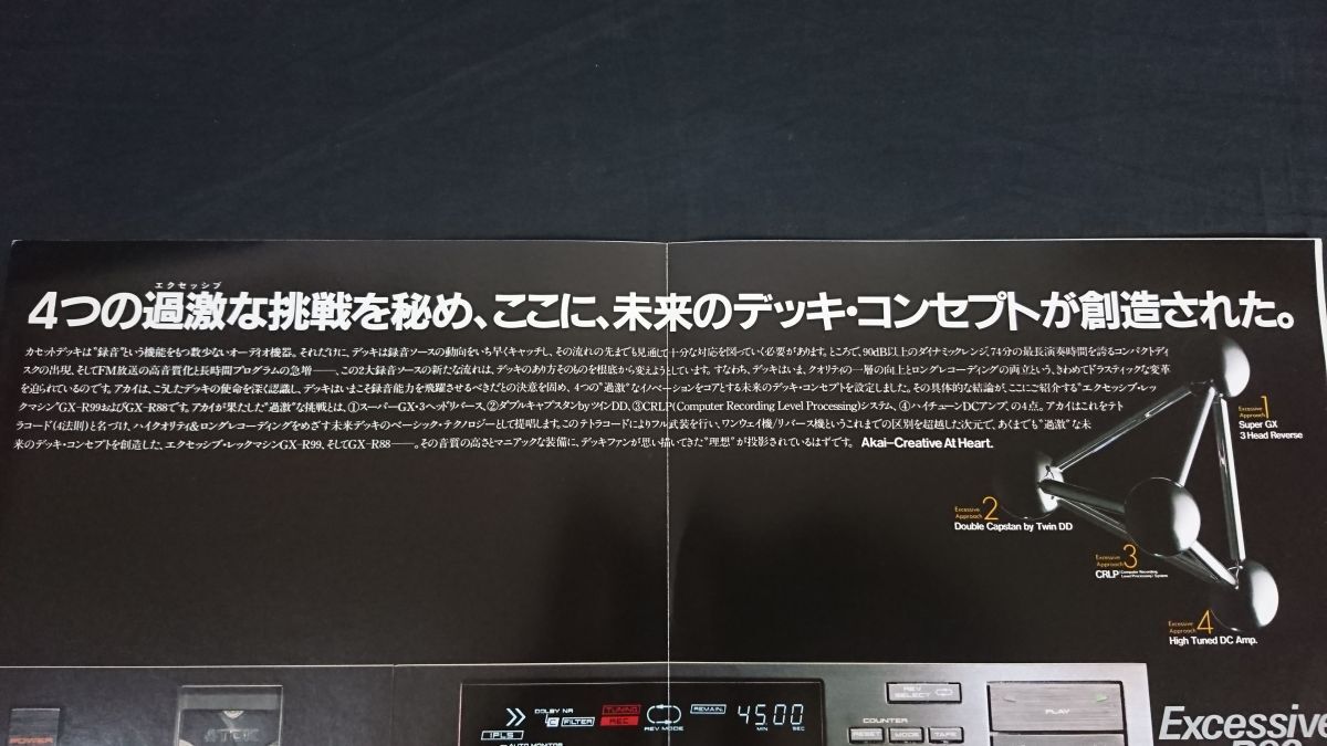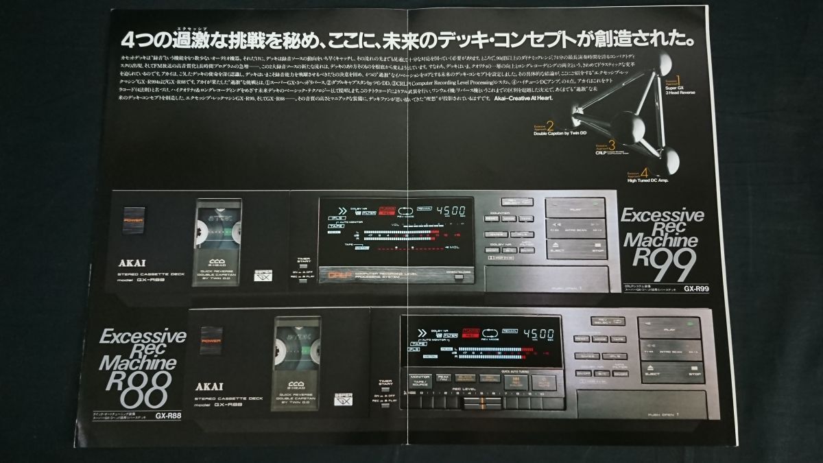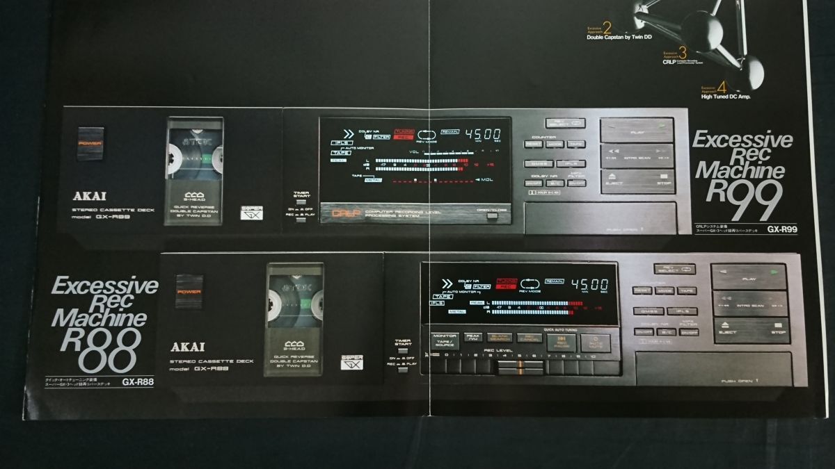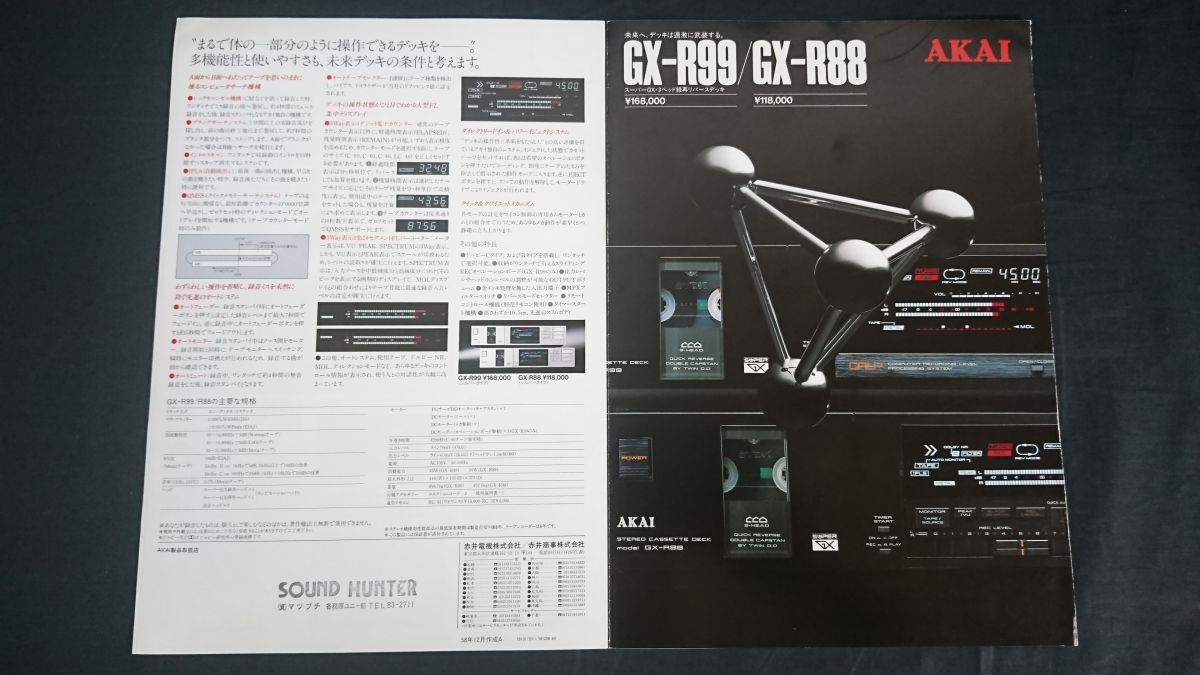 | 【昭和レトロ】『AKAI(アカイ)スーパーGX・3ヘッド録再リバース カセットデッキ GX-R99/GX-R88 カタログ 昭和58年12月』赤井電機株式会社 | |