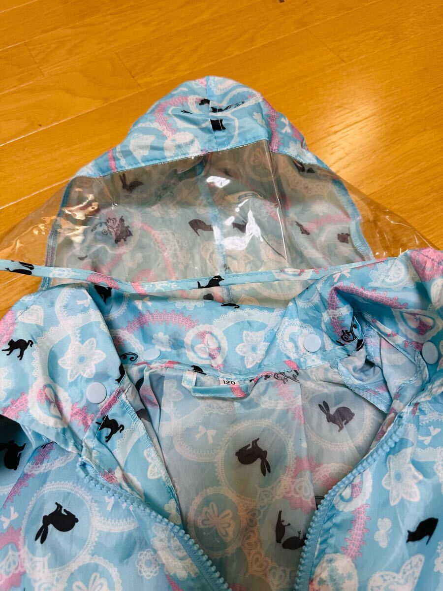 フードは透明なビニール素材で、視界を確保できますし、フードは取り外し可能。