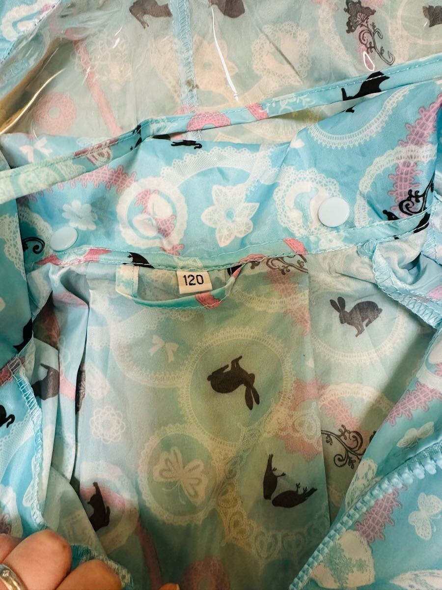 可愛いレインコートは、ボタン式が多く、こちらは、