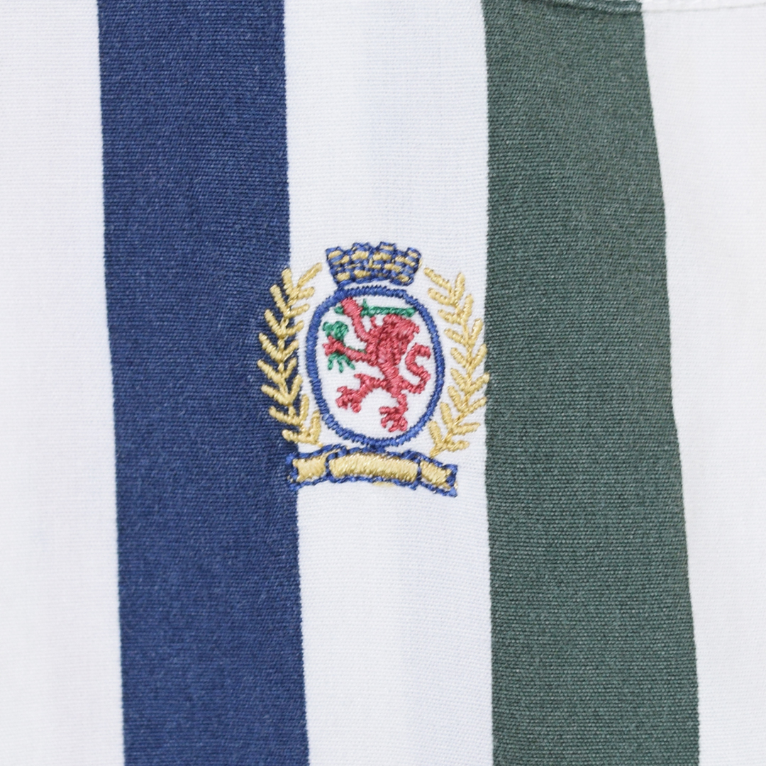 【送料無料】90s トミーヒルフィガー マルチカラー ボタンダウンシャツ ストライプ エンブレム 旧タグ オールド メンズL 古着 @CA1461