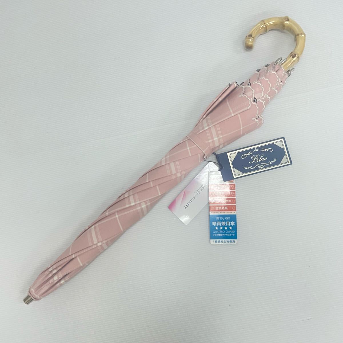 新品52918 Blaoブラオ*くすみピンク チェック柄 サマーシールドNT コットン生地 1級遮光晴雨兼用折日傘雨傘 遮蔽遮光UV機能付きプチパラ