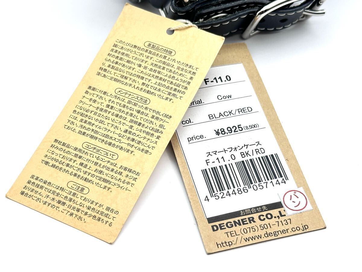 7-8 未使用 DEGNER デグナー スマートフォン ケース SMARTPHONE CASE F-11.0 ブラック レッド 本革 レザー ポーチ 小物入れ Flicase