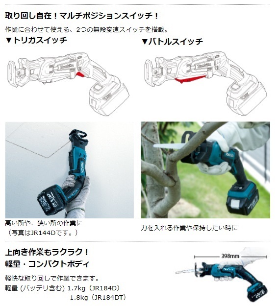 マキタ JR184DZT (本体のみ) (バッテリ・充電器・ケース別売) 充電式レシプロソー 18V
