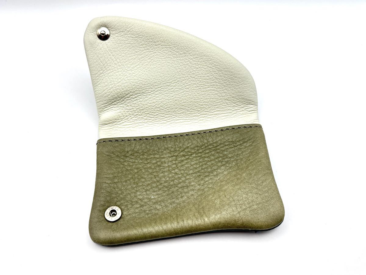 3色の色の牛革を組みあわせたミニポーチです。カードも小銭も入る仕様になっております。ポケットに入る大きさで、旅行やフェスなどセカンドウォレットとしてもおすすめ。