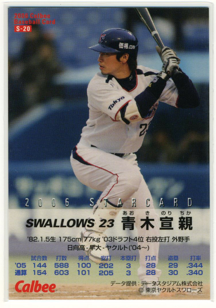 【カルビー 2006 プロ野球チップス S-20 青木宣親(ヤクルト) 金箔サイン スターカード】
